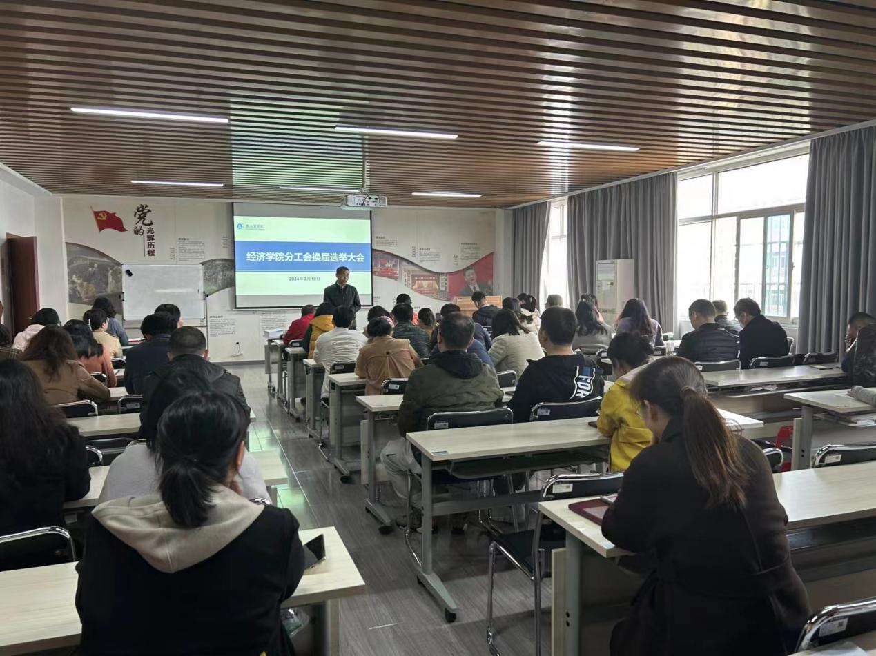 首先由经济学院院长陈文武主持会议,完成经济学院基层工会换届选举工作,通过无记名投票的差额选举方式选举产生了新一届基层工会委员会机构,经济学院基层工会主席张红权、工会委员代成成、工会委员李璐璐。