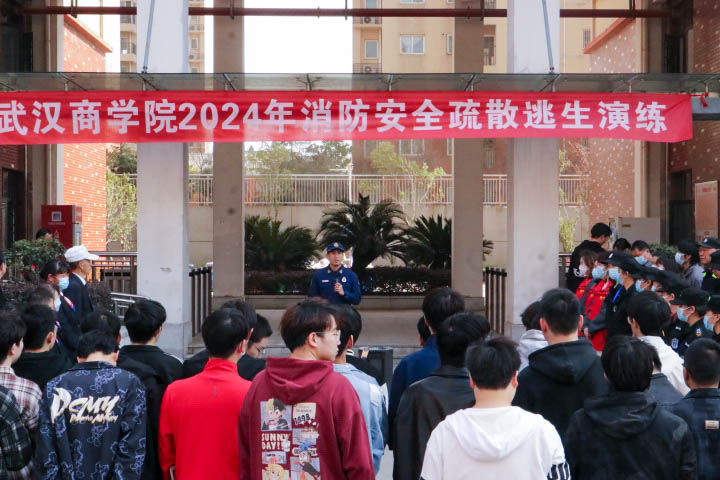 本网讯 “警报,当前楼层出现紧急情况,请有序撤离。警报……”语音播报和警报声交织在滚滚浓烟里,同学们拿上毛巾捂住口鼻,从宿舍楼内撤离到空旷区域。为增强学生消防安全意识,提升火灾自救能力,我校于3月21日下午在南B宿舍楼开展消防演练活动。宿舍管理人员,学校保卫处人员,武汉经济开发区全力消防救助站及部分南B宿舍学生参与本次演练。