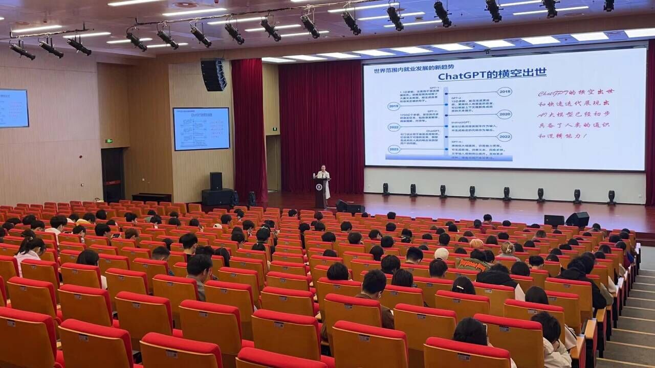 “世界是属于我们每位同学的。我们面临世界百年未有之大变局,要理清世界格局,紧跟时代浪潮。”吴雪首先对职业发展的大环境进行解读,针对许多行业特别是科技领域的市场前景进行了深入的解读。同时对于现在争议很大的人工智能技术,吴雪以ChatGPT为例子说:“旧职业灭亡的同时,新职业在诞生。人工智能是把双刃剑,AI技术可作为提高工作效率的工具去满足时代发展。”
