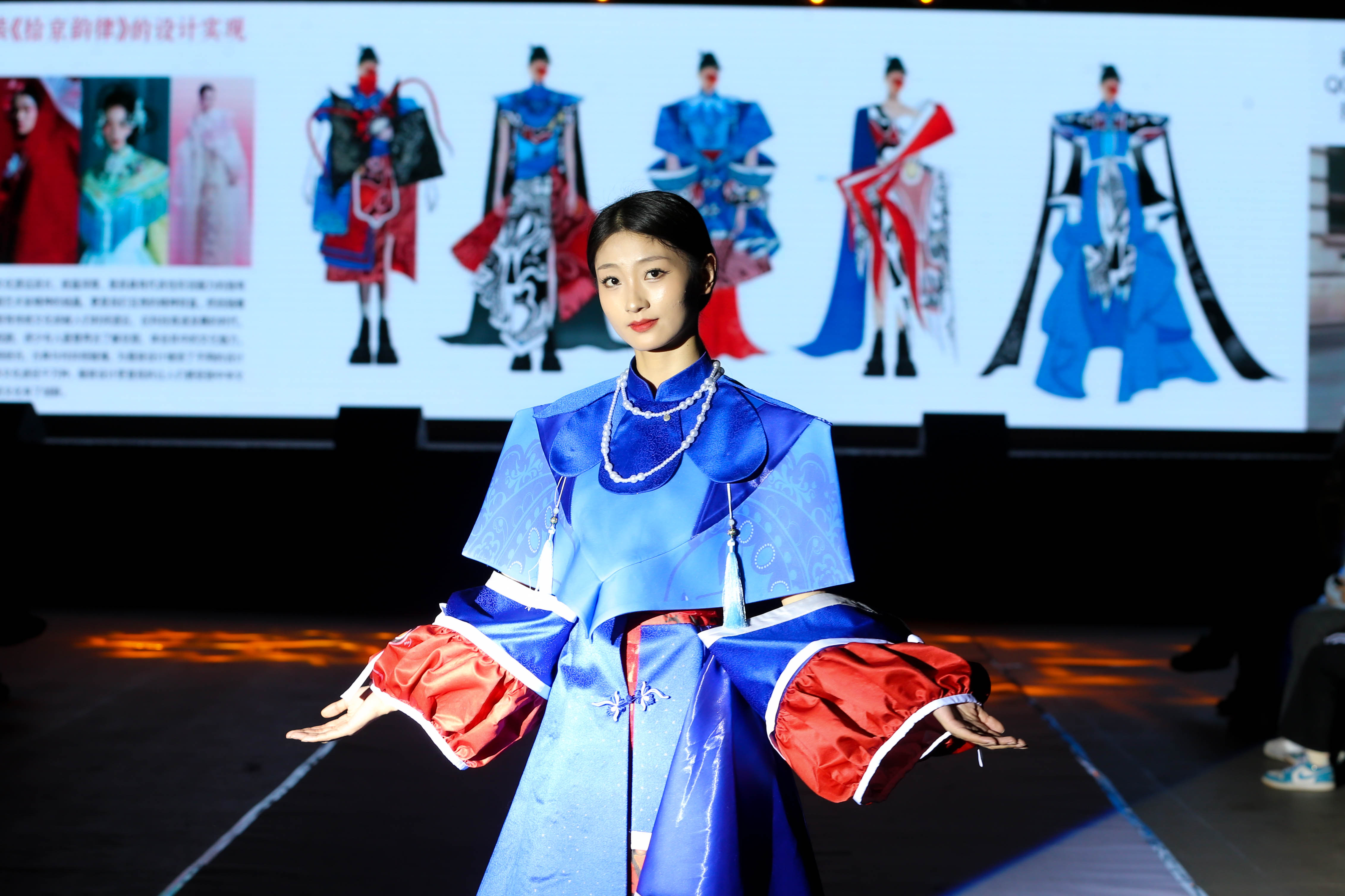 “画栋雕梁追古韵,重唤醒芳显风流。”结合当今时代风尚,设计师们在灵感来源上大胆尝试,将自然元素、文化元素以及科技元素等融入设计中,打造出既具有文化特色又不失现代感的服装作品。作品《骨生花》让人眼前一亮,它的设计者2020级服装与设计三班李春福表示,创作来源于生活自然中的孕育生命的过程,将生的过程进行一个升华,以“往生路上孕育的生”为主题,通过不同的表现形式展现出新一层的含义,体现自然和生命的延续。作品《幻海吟语》同样灵感来源于“Ocean”,体现了人与自然和谐共生。作品《苗叙》以苗族服饰特点为设计灵感,通过服装造型设计、配饰运用、手工制作等过程,淋漓尽致地展现了苗族传统服饰与时代结合的创新设计,很好地传递了民族文化的符号特色。作品《狮醒东方》也融入了回族的民族元素,传递中国传统文化的魅力与精神面貌。作品《余晖》的设计师何喆宇以科幻电影《星球大战》《沙丘》《疯狂的麦克斯》为背景的未来世界为设计背景,将剧中的科幻元素融入到设计中,旨在表达人们能够在恶劣的环境中锻炼自己得到成长,体现了当代环境与人类的关系。作品《未定光界》《末日生存》也同样体现了人们经历着互联网泡沫的巅峰,感受着新旧纪元的交替,满怀着对未来的憧憬和希望。