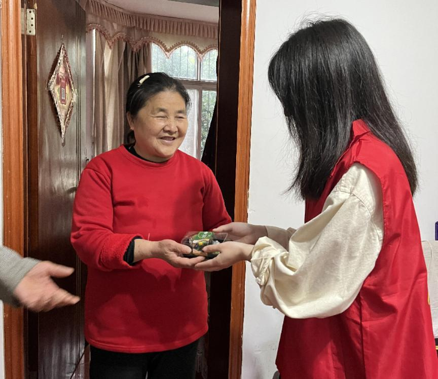 同学们与社区工作人员共同上门走访,送青团,耐心聆听社区独居老人们的心声,了解老年人的需求与关怀,提供心灵慰藉与帮助,对需要关怀的独居老人送去关心,拉近大学生与社区居民的距离,共同营造温馨团结的社区环境。