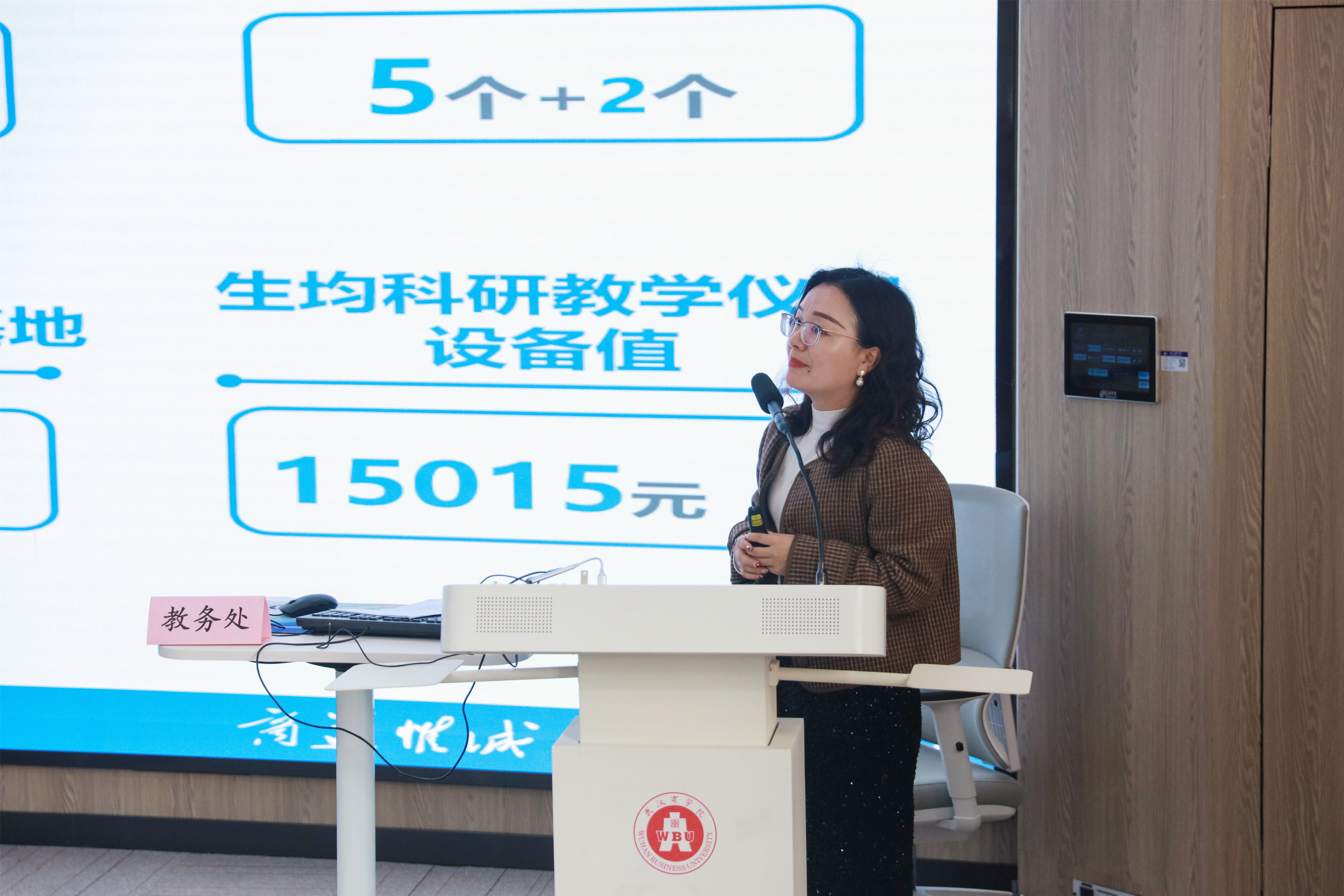 随后,教务处副处长王艳为新进教职工解读教学管理制度。通过分析教学基础数据和人才培养成果数据,分享人才培养理念和思路,提出教学教育教学最新理念,强调要坚持“三强”的应用型人才培养体系,坚持“四为”教学规范,坚持为人、为业、为生、为学。守好课堂的主阵地,做好学生的引路人。通过智慧教学、智慧辅助系统,打造互动性强、趣味性高的课堂。
