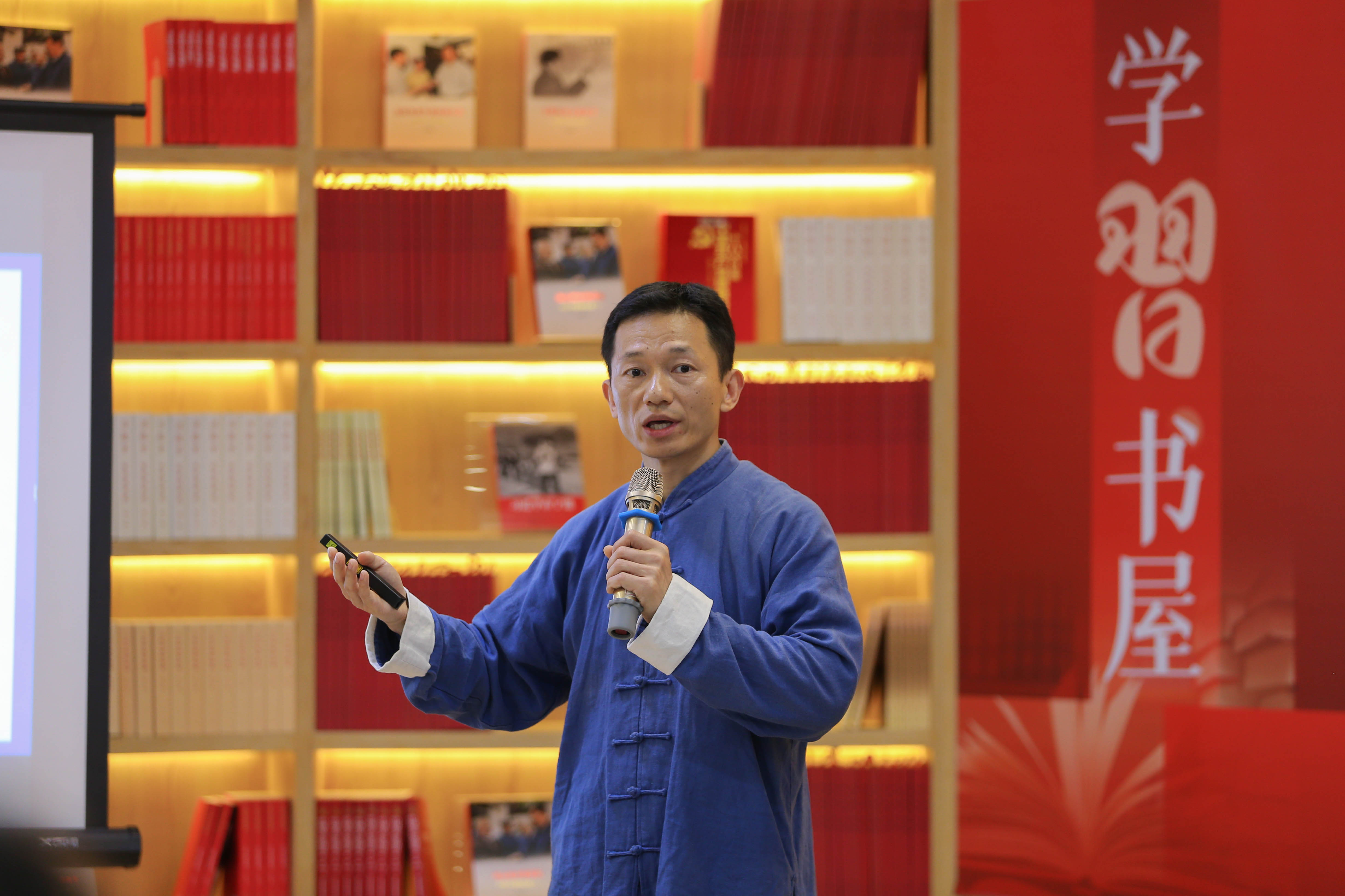 本网讯 天地之心,乃太极阴阳,蕴含着宇宙间的无穷奥秘。缠丝运劲,颐性健体,乃我国古老养生之道的精髓。4月8日晚,我校第40期国学小课“八段锦韬养原理与太极文化”在校史馆开课。本次课程邀请中国武术协会会员、中国武术六段、陈式太极拳十二代传承人项楷先生,揭开太极世界的神秘面纱,体验八段锦的健身魅力。