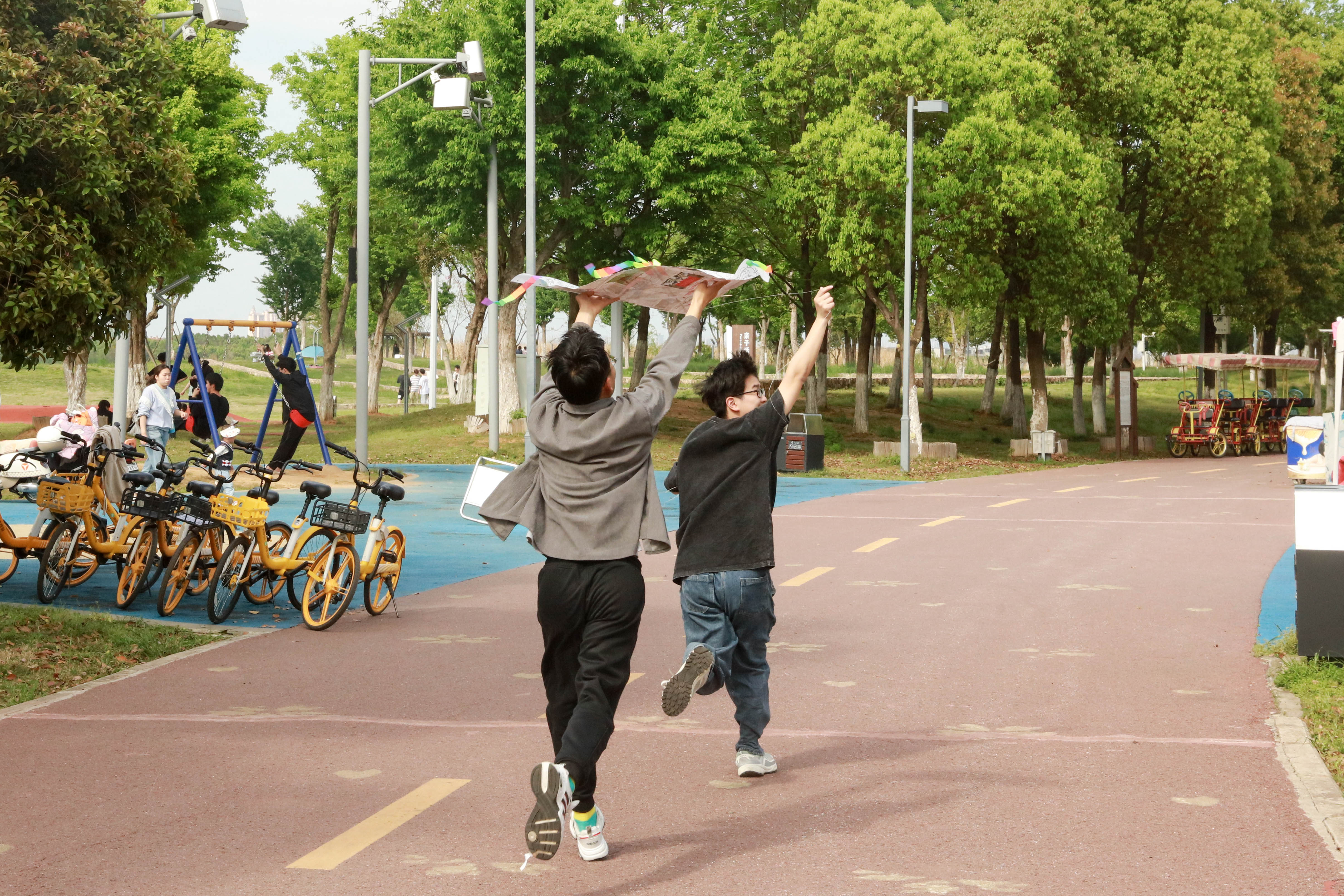 本次活动可以用旧报纸制作风筝或亲手彩绘风筝。制作风筝首先要考虑的是风筝骨架的扎制,同学们先用木条搭好骨架,再把旧报纸裁剪至合适的形状后粘贴在搭好的骨架上,最后系上线和弓弦,一个牢固的风筝便初见雏形。“排布骨架时要注意给风筝留出泄风的风兜,有利于风筝稳定放飞。”2023级机电工程学院建筑环境与能源应用工程专业何一鸣分享说。动作创意彩绘风筝DIY是在原有的风筝艺术上创新,让风筝重新焕发生机,同学们充分发挥想象力与创造力,一笔一划将心中的色彩与想象跃然风筝之上。色彩斑斓的风筝搭配流畅的线条,不一会儿,同学们便做出了属于自己的风筝。随着一只只风筝的完工,大家都迫不及待来到草地里,三三两两相互合作,兴致勃勃地把手中的风筝放飞蓝天。同学们手握轴线,一路小跑,时而拉线放线,时而前后轻抖,精确控制着风筝升空的速度和放飞的高度。