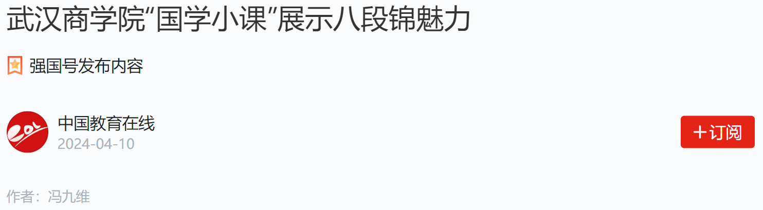理论知识讲授完成后,项楷先生便带领大家开始实操。他亲自示范了八段锦的每一个动作,并详细讲解了每个动作的要领和注意事项。在项楷学生专业的指导下,大家认真学习每一个动作,跟随音乐调整呼吸,双臂抬起、掌心外旋、稳扎马步,一招一式整齐划一。初学者先把动作练好,熟练后再配合呼吸方法。练习前,最好先热身,做完后要收功,比如,轻轻拍打头部、搓耳朵、敲击感觉酸痛的部位等。“第一次听说八段锦这个词语是在今年春晚,当时我喜欢的歌手周深演唱了一首《健康到到令》,这首歌曲的歌词中包含了八段锦的内容,是一种健康养生的体操。我平时也比较关注养生方面的知识,了解中医调理与生活作息,我就对这次国学小课的内容产生了强烈的兴趣。果不其然,这次跟着项老师的步伐,真的让我体会到了一点养生之道,我整个人都处于一种放松的状态,简直棒极了!”2023级外国语学院翻译一班刘佳硕感慨地说。