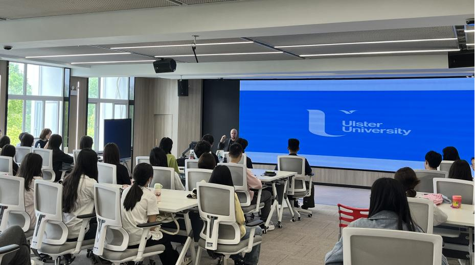 与学生的交流过程中,Sven Schorttman介绍了英国的基本情况和奥斯特大学所在地北爱尔兰的风土人情,深入浅出地向学生讲解了奥斯特大学的教学理念、教学模式和人文学院硕士项目的开设情况,鼓励学生踏出舒适圈,开拓视野,接触多元文化。英国奥斯特大学教师Angela Zhang详细介绍了我校与奥斯特大学的4+1升硕项目,包括专业选择、申请条件和就读费用等问题。提问环节引发了学生们的浓厚兴趣,现场气氛活跃,双方进行了热烈的交流。