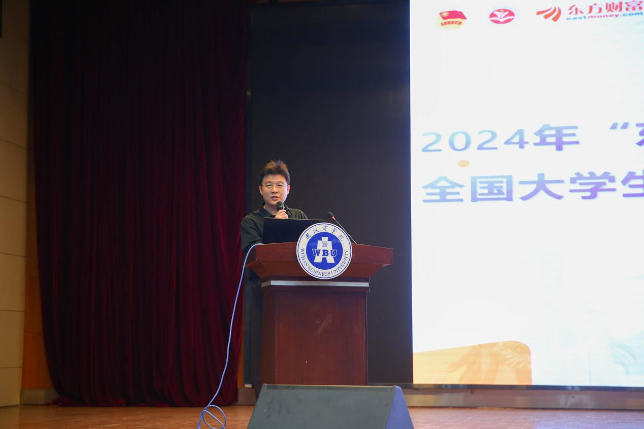 东方财富集团高校业务部湖北负责人余浩阳带来第十届“东方财富杯”全国大学生金融挑战赛介绍。他着重于本次活动概述和公司介绍,让同学们对本次活动有了更深入的了解。