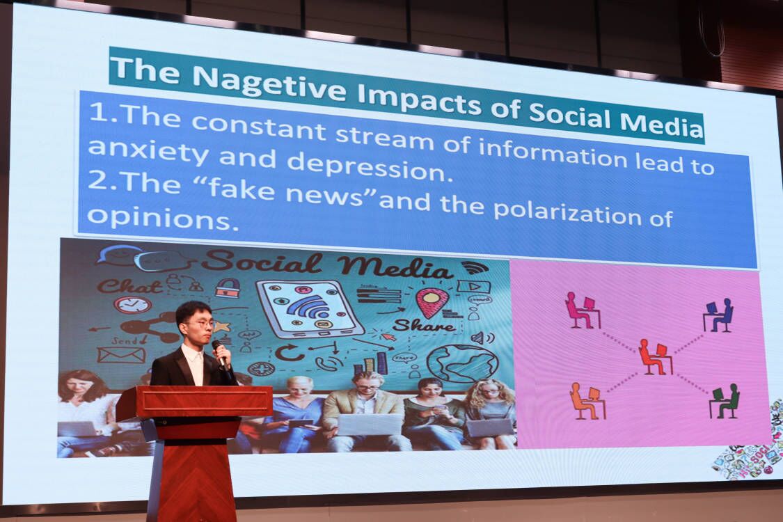 本次大赛的18名选手全部来自武汉轻工大学、湖北第二科技学院、湖北经济学院、湖北科技学院、湖北工程学院和我校六所高校的中外合作办学项目。他们精彩的风采展示和流畅的语言表达让现场师生赞叹有加。经过激烈的角逐,我校国际教育学院三名选手以91.6、90.8和90.4分斩获一等奖。在点评环节,武汉理工大学外国语学院但海剑教授用流利娴熟的英文对参赛者的出色表现给予了高度评价。他衷心希望学生们能够持续热爱英语学习,不仅在专业知识上认真学习,更要肩负起青年人的使命和责任,为国家的繁荣发展贡献自己的力量。