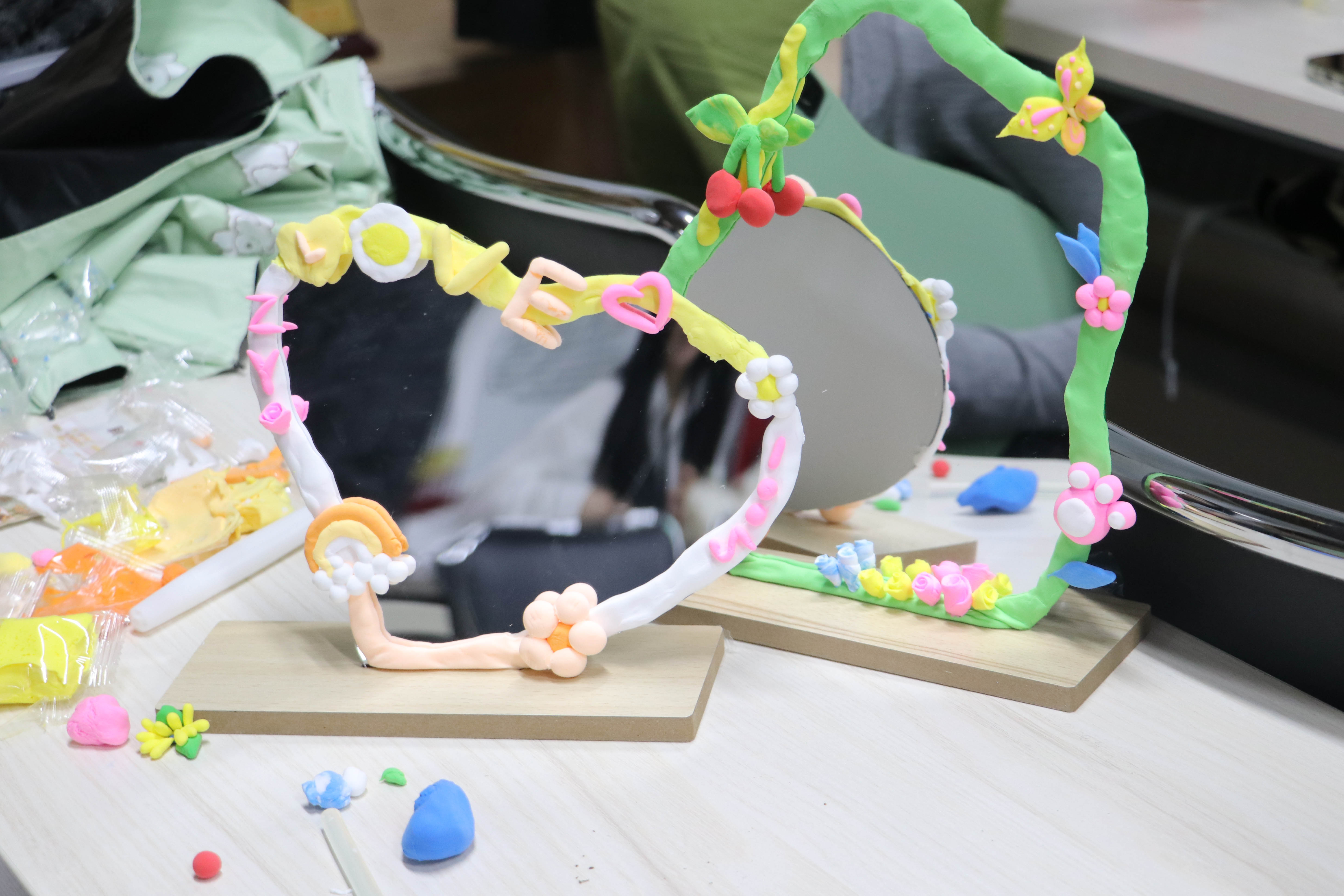 沙龙活动由镜子diy,扭扭棒,植物拓染三部分组成,每位同学可以选择其中一个项目在工作人员的帮助下创作出属于自己的作品。本次活动力求创新,突破传统方式让学生亲近自然中悦纳自我,为学生带来不一样的体验感受,加深学生对于心理健康的认识。现场活动各有特色,有考验颜色搭配的镜子diy,有考验动手能力的扭扭棒,还有考验力量的植物拓染。这些活动贴合“我爱我”的主题,贴近自然,重视内心情感和健康。