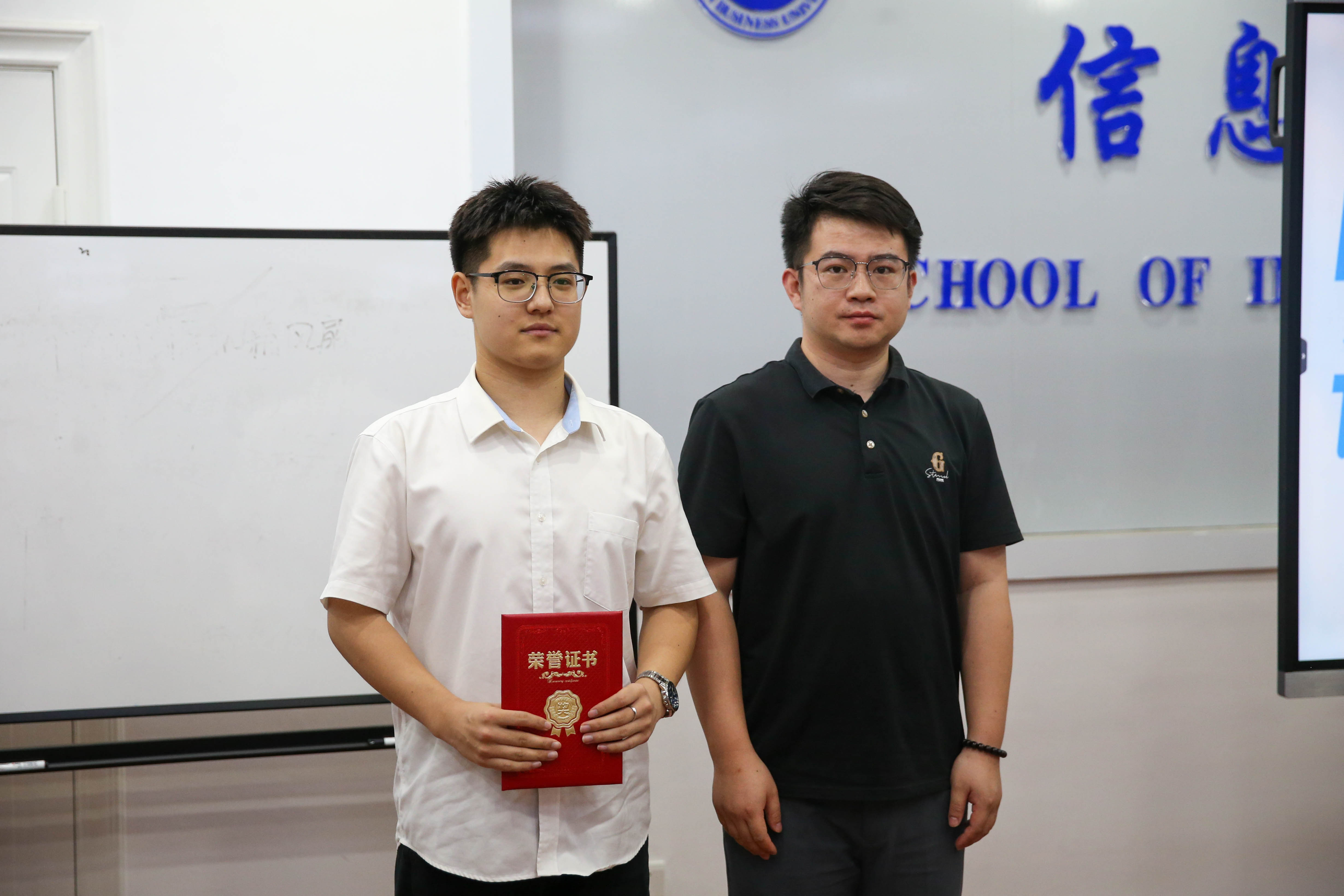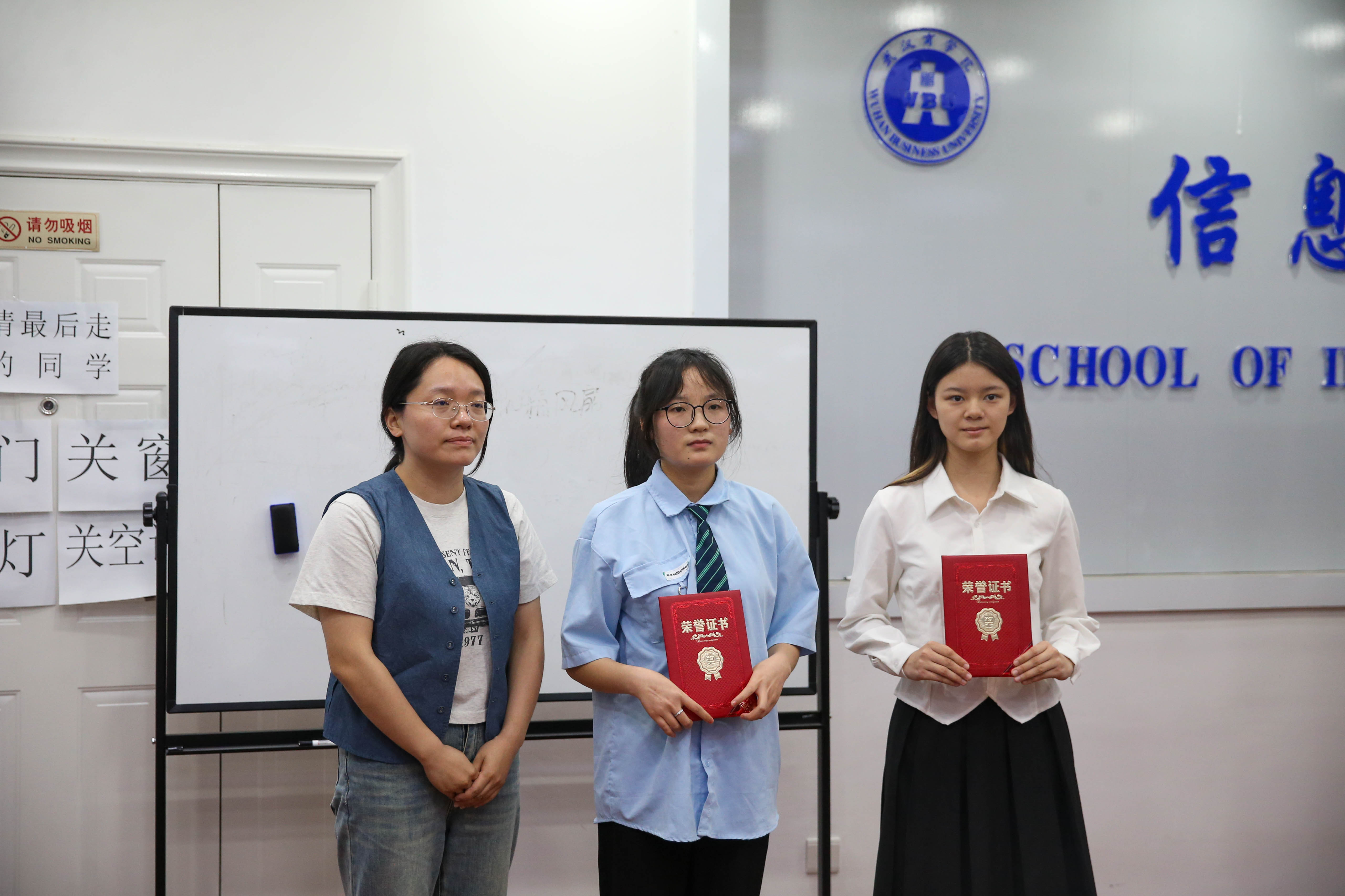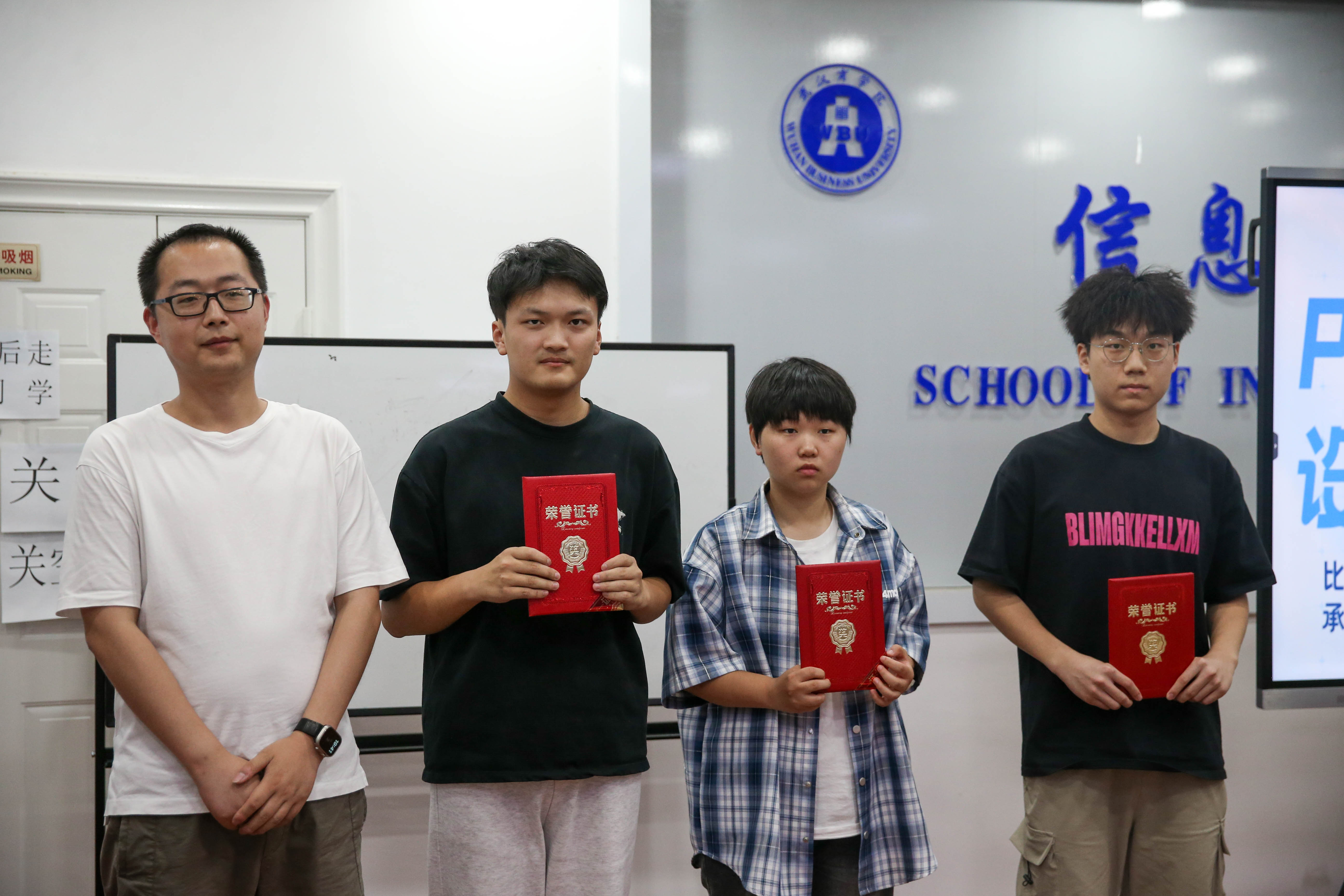 经过数小时的讲解比拼和专业评委的认真评审,最终评选出了各个奖项的获得者。2022级商务英语专业唐安平凭借其出色的设计作品和精彩的讲解荣获一等奖,2023级机电工程学院卢蕾雅及2023级物联网工程专业靳书娇斩获二等奖,三等奖为2023级旅游管理学院王玉雯、2023级经济学院但金城、2023级外国语学院任艺。沈俊为一等奖获奖选手颁发荣誉证书和奖品以资鼓励,二、三等奖选手也荣获证书与奖品,最后,现场参加老师与参赛选手合影留念。