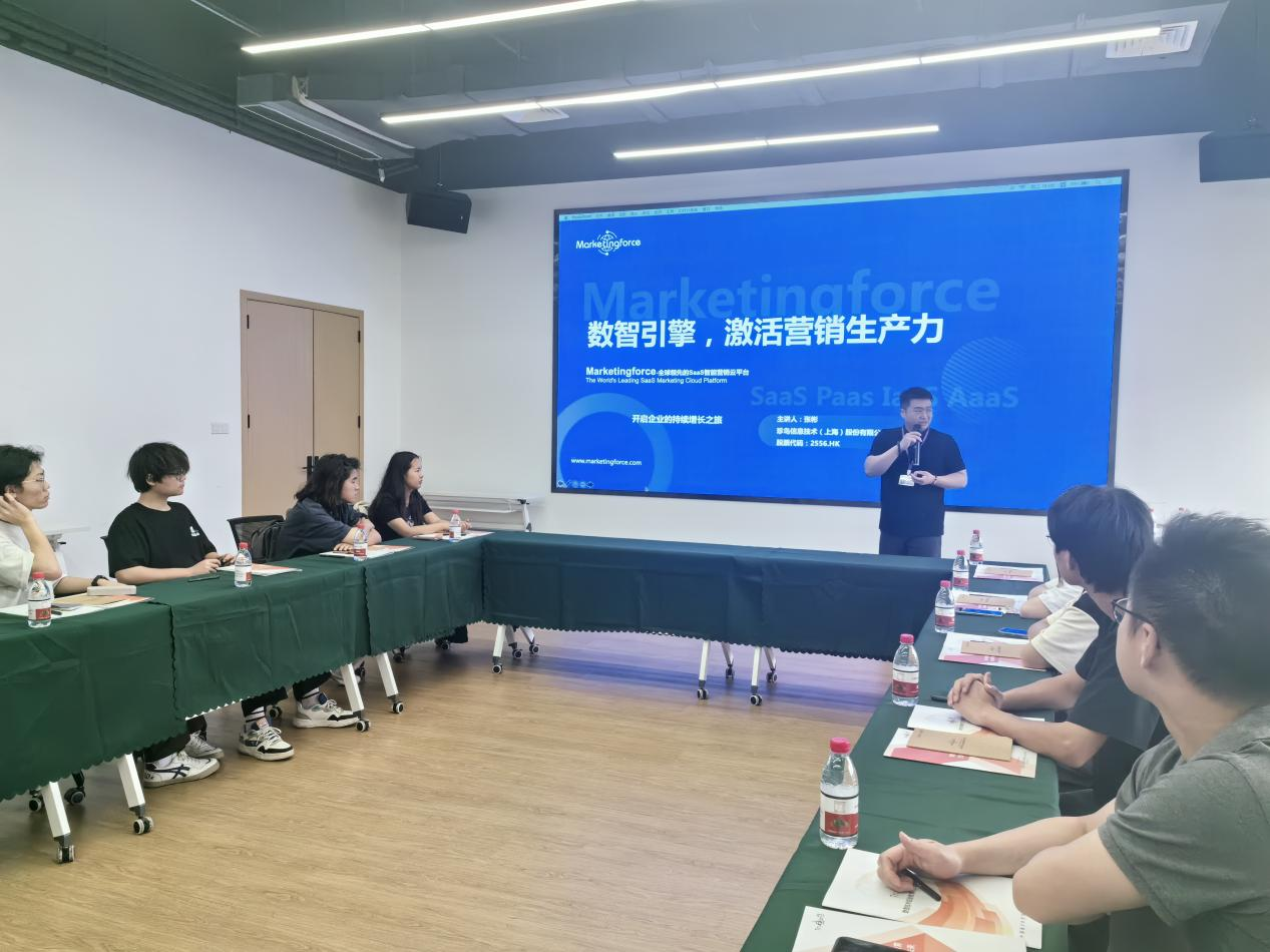 活动开始,珍岛集团大区经理张彬先生向来访的师生详细介绍了公司的使命、愿景以及价值观。珍岛集团致力于打造全球领先的SaaS智能营销云平台,通过其创新的云计算、大数据和人工智能技术,为全球中小微企业提供全面的数字营销解决方案。接着,张彬带领师生们参观了公司的办公区域,让大家对珍岛集团的工作环境和企业文化建设有了更直观地了解。