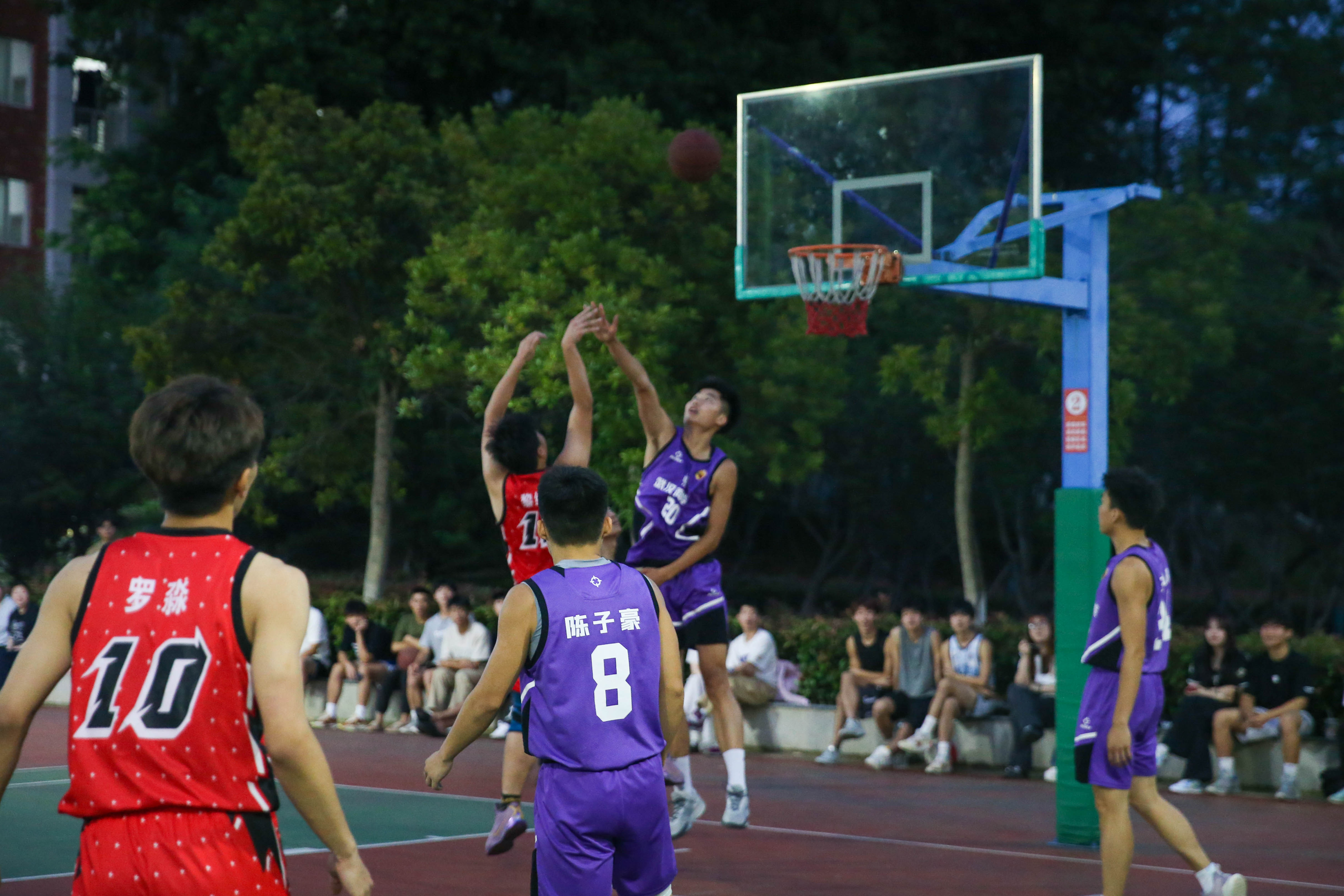 随着裁判席一声尖锐的哨响划破夜空,篮球场上看不见的硝烟弥漫开来。各代表队的球员们以飒爽的身姿、精准的投篮、敏锐的判断力赢得了在场观众们的阵阵欢呼。比赛现场,各代表队充分发挥“友谊第一,比赛第二”体育竞技精神,在比赛中友好切磋,比拼实力。在内线的默契配合与外线的精准传球间,交织着队员们齐心协力、团结一致的团队协作精神,展现了我校学子的青春风貌。