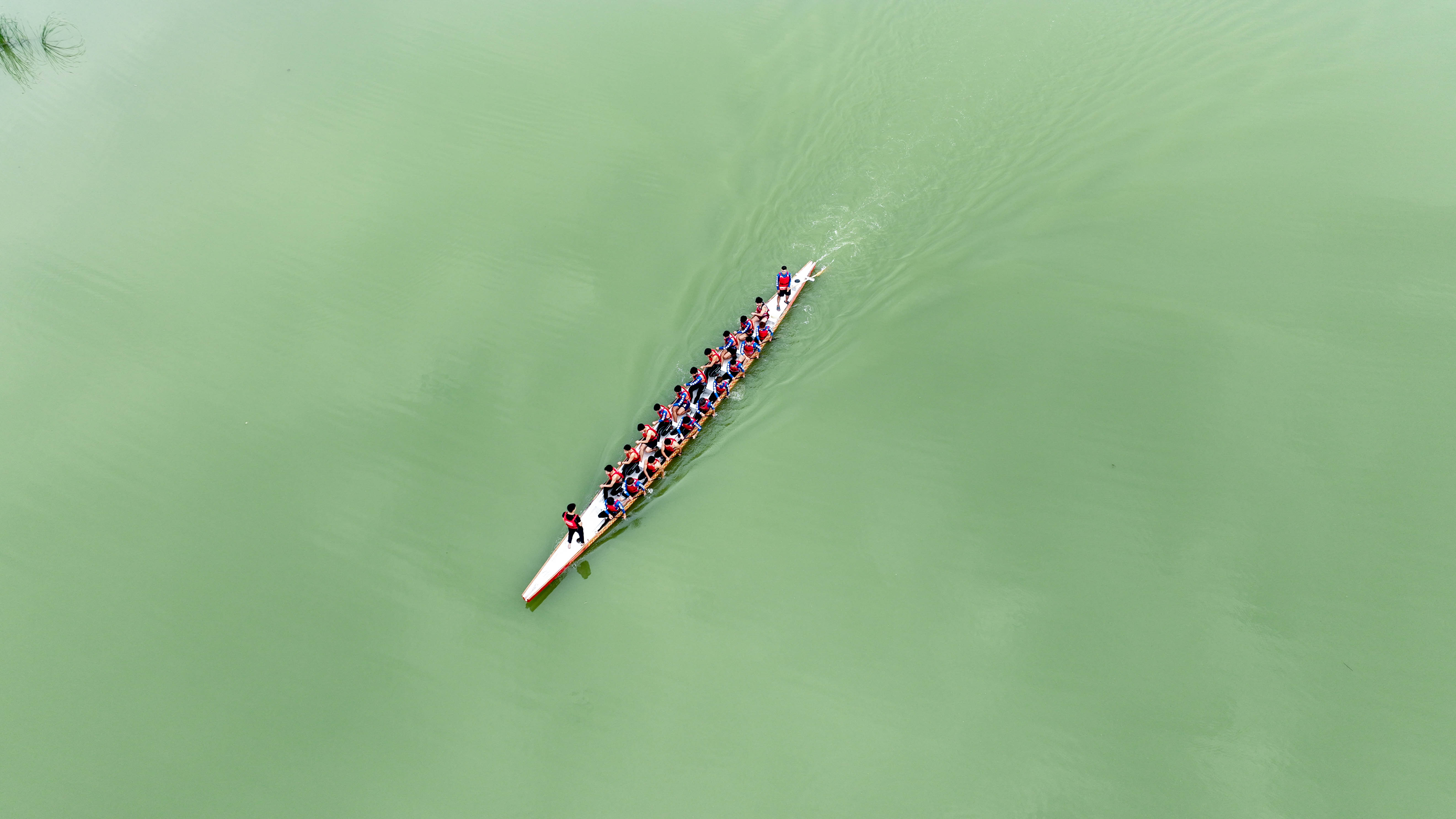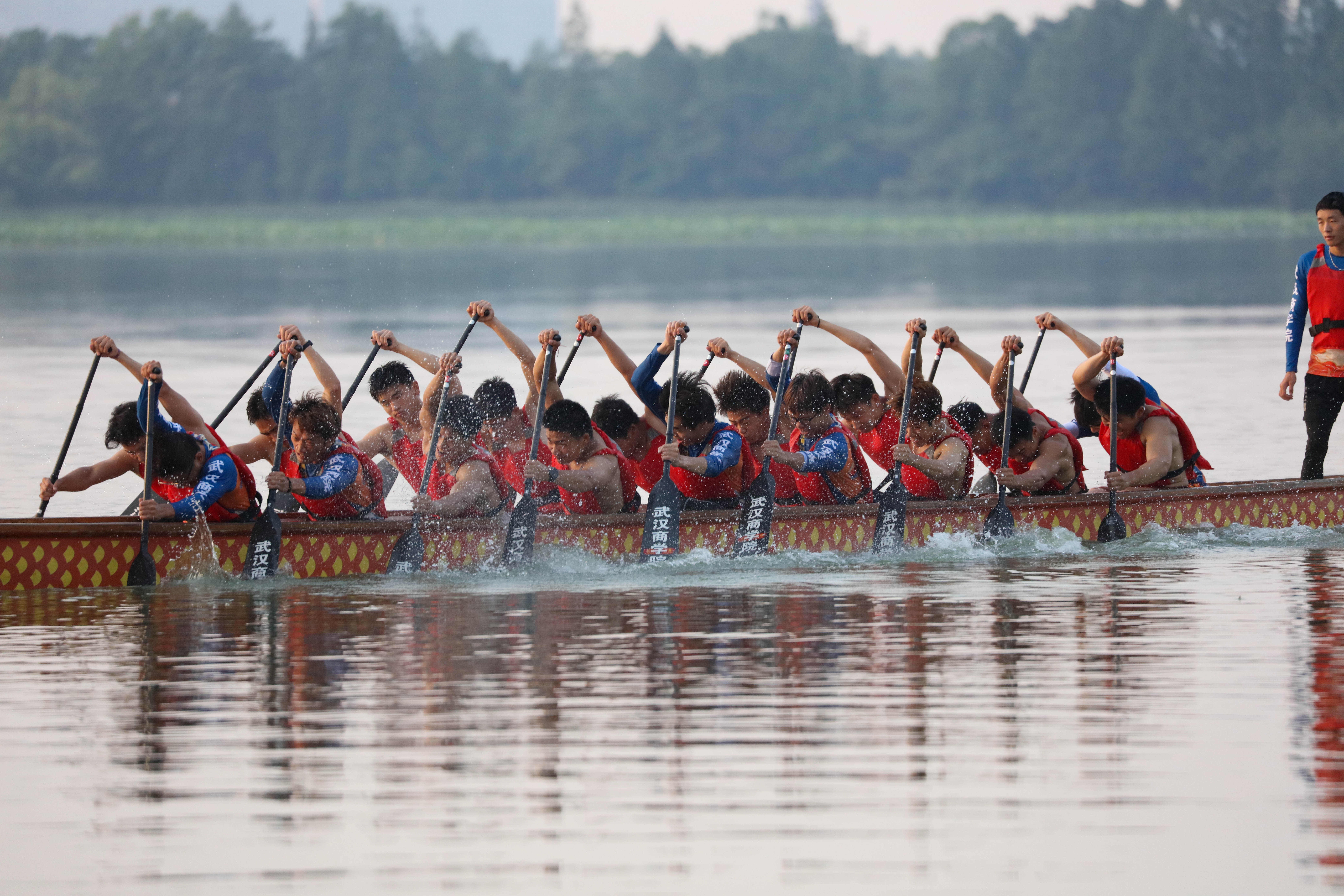 6月6日,武汉市蔡甸区后官湖上。“预备,划。”一声令下,一只“蛟龙”劈波斩浪,如离弦之箭,载着队员驶得飞快,湖面掀起层层白浪。这是一支10天之内拿了6个冠军的龙舟队。