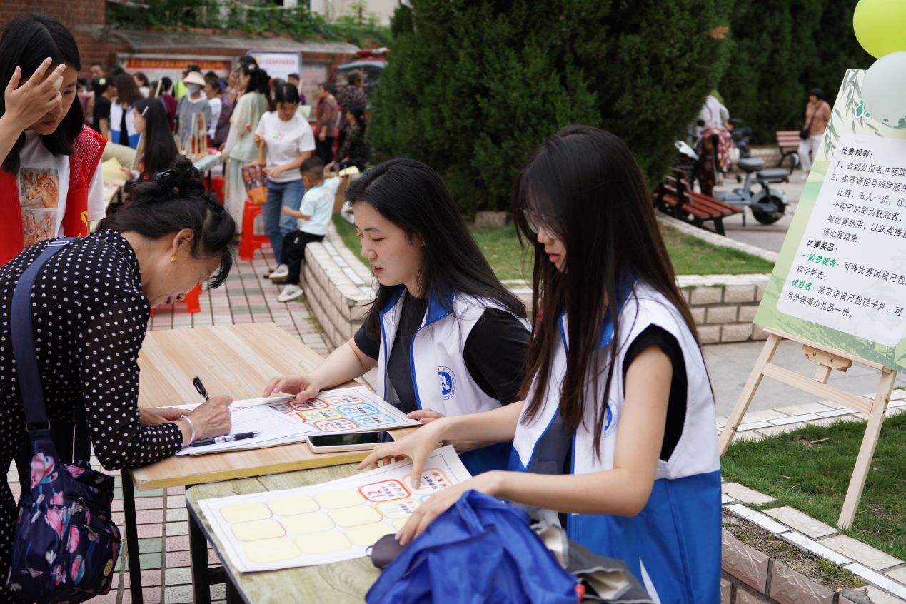 本网讯 “端午粽香传,青春志愿行”。在6月4日下午,我校工商管理学院与会计学院的9名志愿者,在工商管理学院辅导员王博的带领下,来到了永久社区,积极参与社区举办的端午节游园活动。本次活动以“棕情端午”“一钓就棕”“棕望所圈”“端午文创”“国诵端午”和“棕暖心甜”为主题,志愿者们与社区工作人员携手,为居民们带来了节日的祝福和温暖。