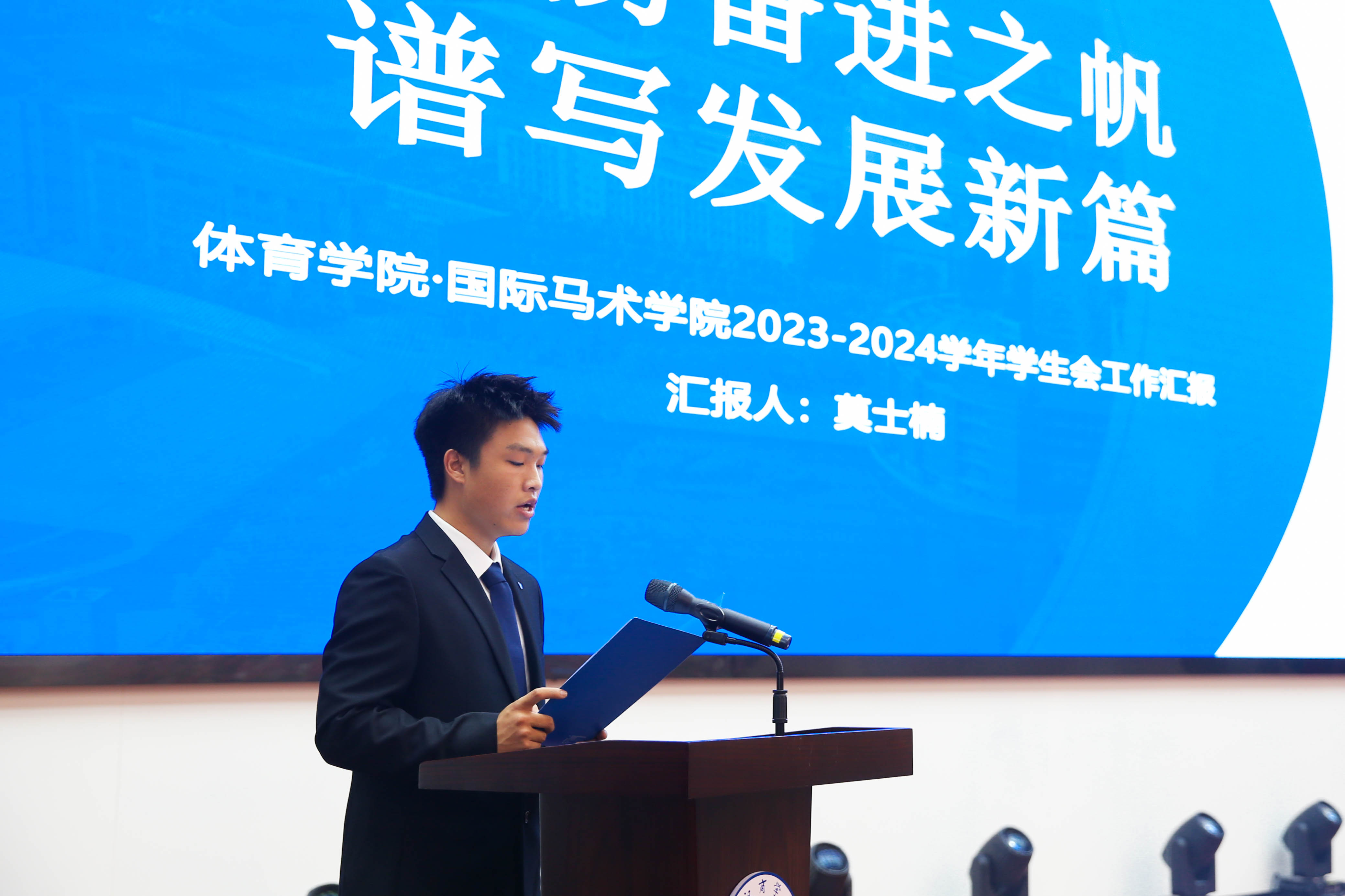 学生会执行主席钟秋洁会对学生会2023-2024学年年度述职进行报告。校学生会在校党委的正确领导下,自2023年3月2日成立了学生会团支部,聆听同学之声,想同学之需,做同学之所求;坚持全心全意为同学服务的工作宗旨,深入开展“我为同学做实事”项目,在思想政治引领校园文化建设,在生活领域学生权益维护,在学术学风养成和文明校园创建等方面取得不错的进展,致力于为同学们的身心健康诠释责任,展现青年担当。