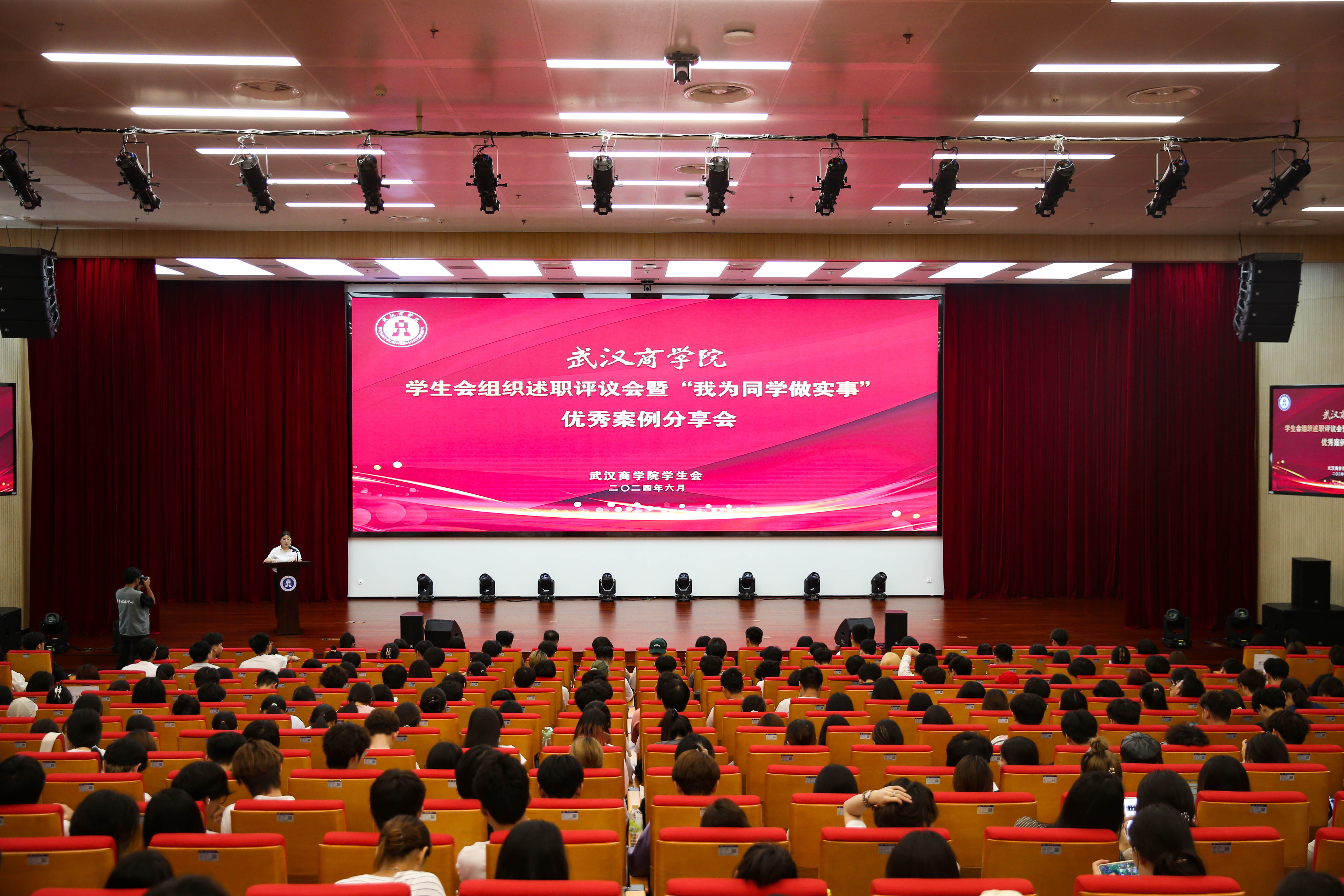 本网讯 6月14日,我校在南区大学生中心多功能厅召开学生会工作述职评议会暨“我为同学做实事”优秀案例分享会。本次评议会总结2023-2024学年度的学生工作,推动了学生事务的协调发展和服务水平的提高,促进学生会工作更好地扎根青年,服务青年。