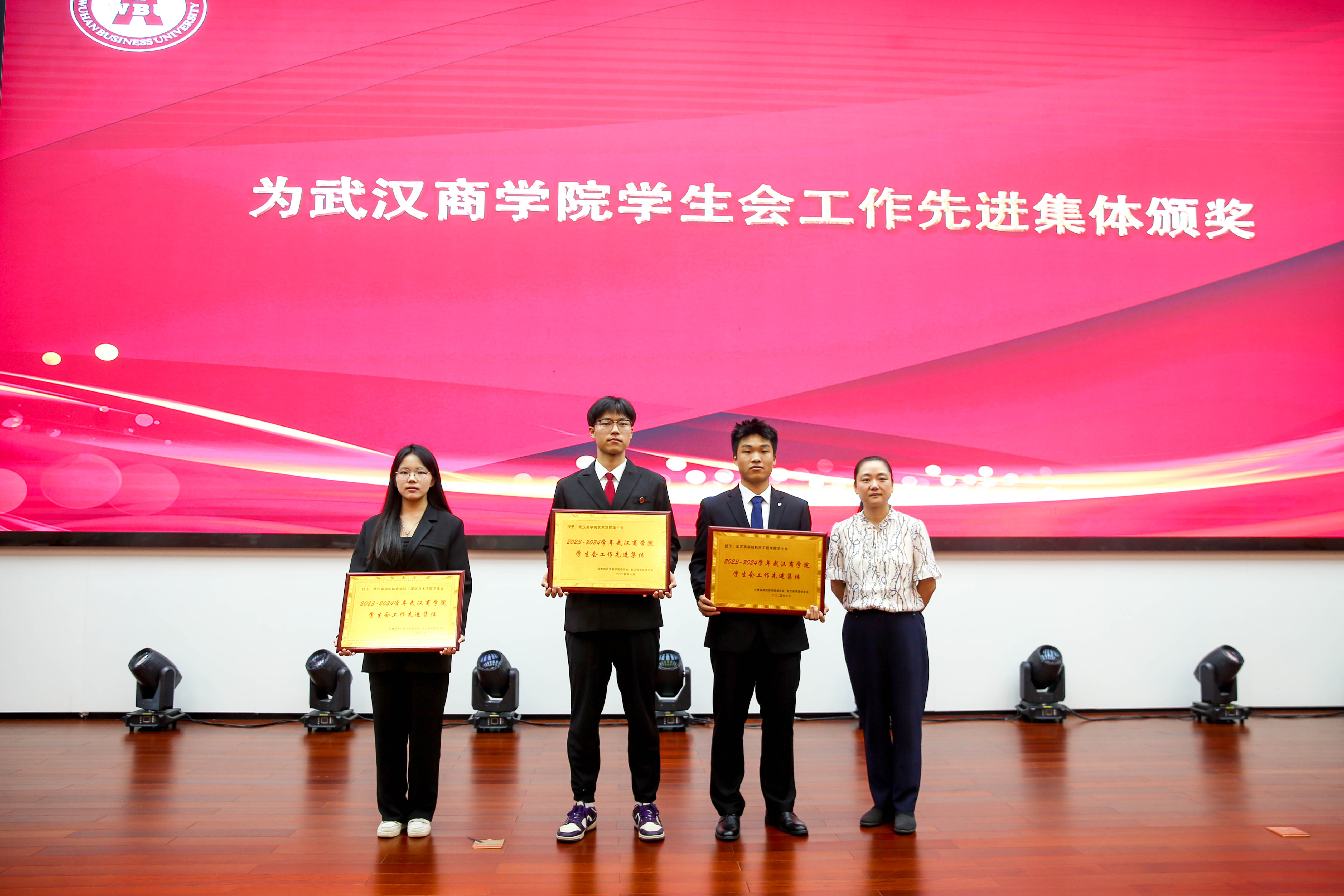 校团委书记江雯,党委学生工作部副部长江倩,学生事务管理科负责人陈瑞雯为获奖的个人,班级和集体颁奖。