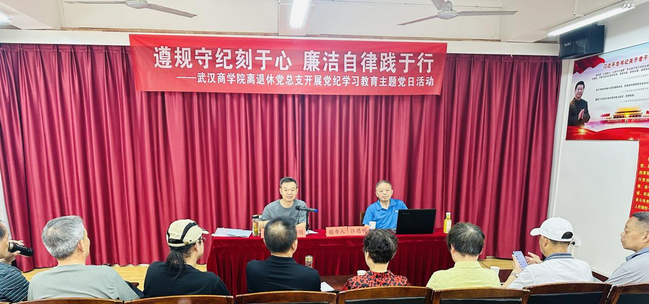 本网讯 为深入学习领悟习近平总书记关于党的纪律建设的重要论述,认真贯彻落实党中央关于在全党开展党纪学习教育的部署和武汉市委老干部局工作要求。6月21日上午,离退休党总支组织离退休党总支成员、离退休各党支部党务工作者、退休党员代表在汉阳五里新村校区老干部活动中心开展了党纪学习教育主题党日活动。此次学习活动,邀请了武汉市委党校原副校长汪德明同志(现任武汉市银发初心党史宣讲团团长、党的二十大精神宣讲团成员,武汉延安研究会副会长)为我校老党员们讲授党纪学习教育专题党课,学习活动由离退休党总支副书记何跃明同志主持。