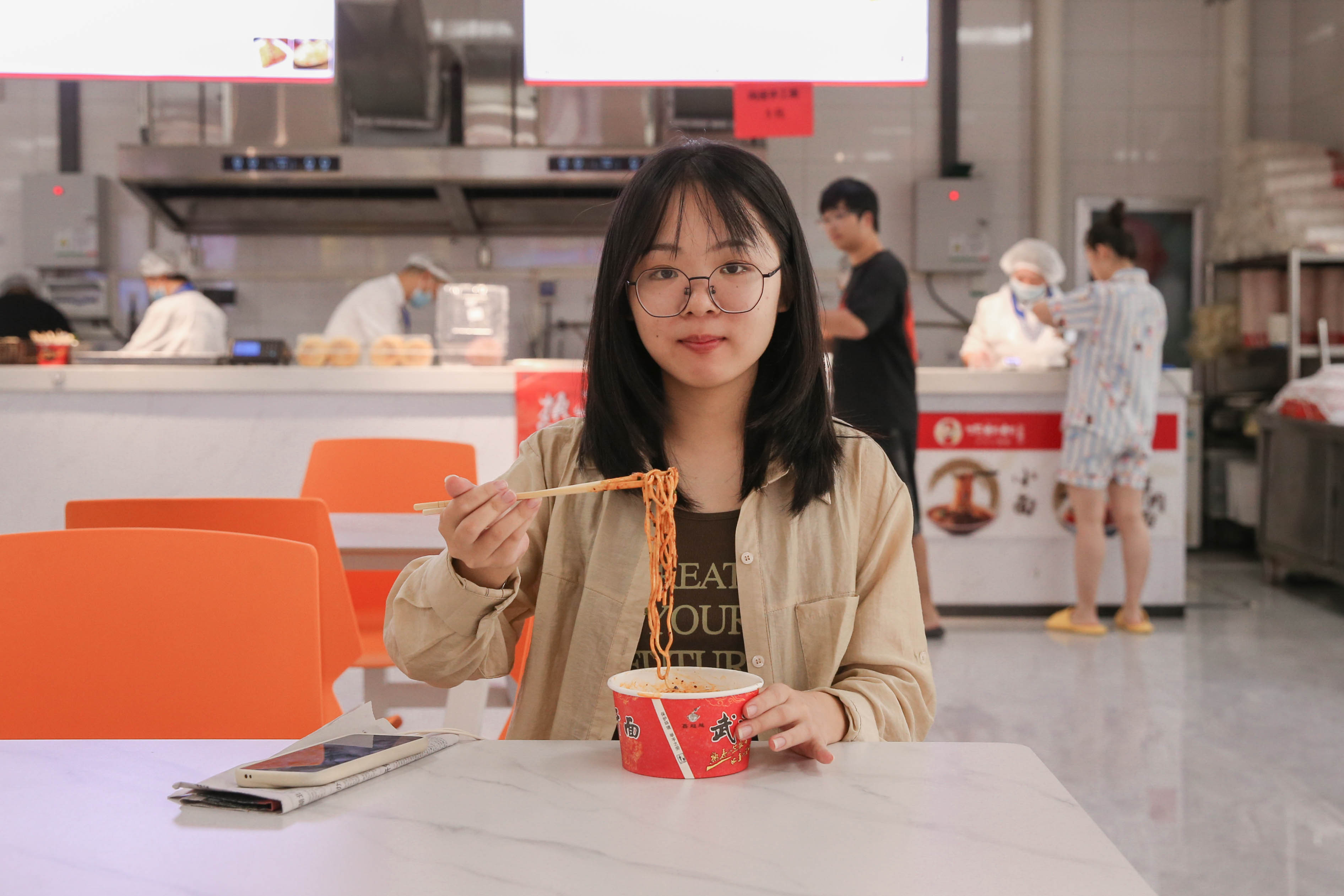 劲道Q弹的碱面、“中华老字号”芝麻酱,搭配秘制酱料、脆爽酸豆角,稍稍一拌,香气逼人。“哇,学校请我吃热干面啦!”8月29日上午,大一新生曾洋入校就拿到了一张热干面免费体验券。曾洋是第一次吃热干面,端过浓香的面条,曾洋认真品尝着:“很香,超好吃,多放点辣椒就更好了!”