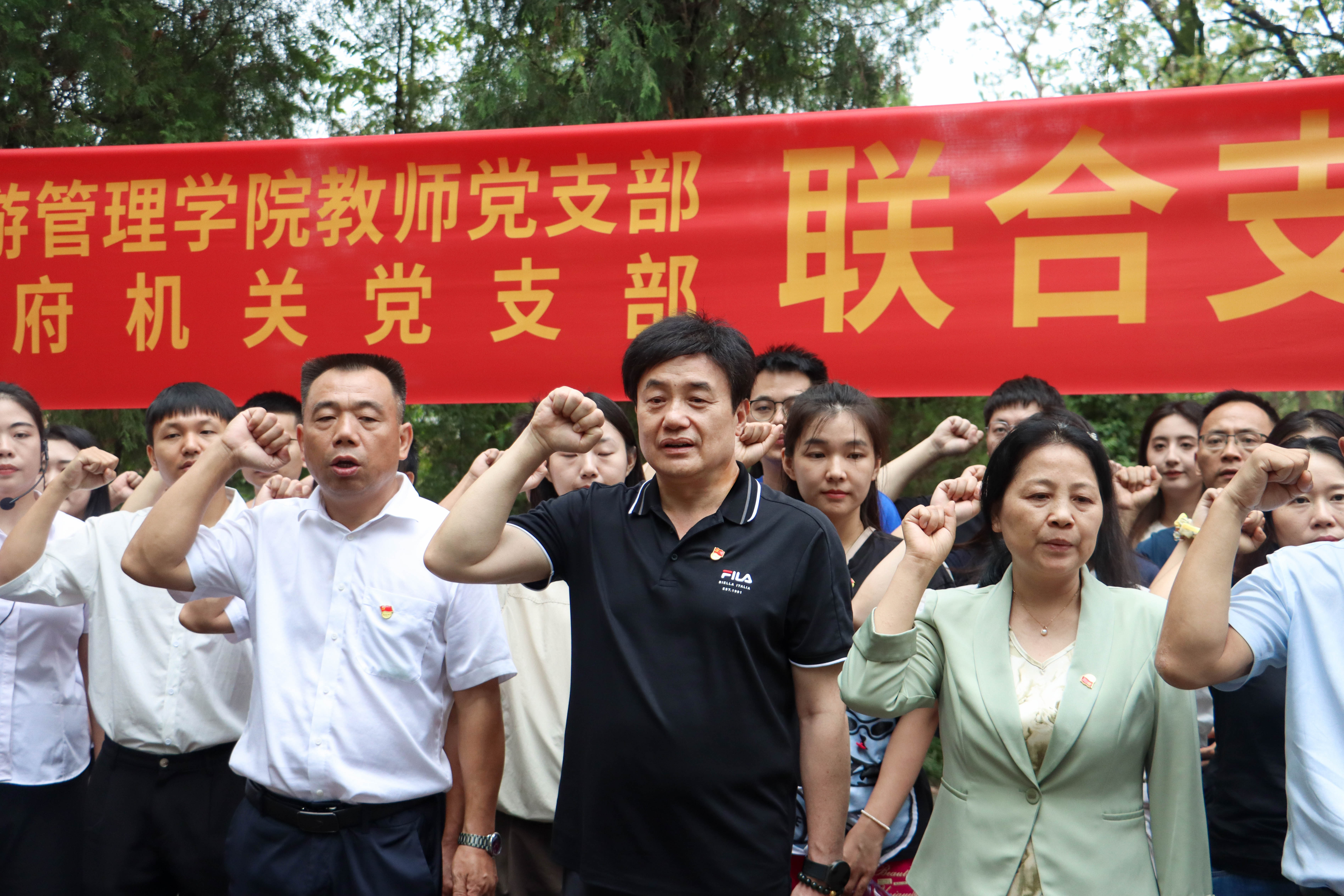 旅游管理学院党委书记杨崇君表示,我们要充分认识高校党建和企业党建合作共建的重要意义,在共建的过程当中,要不断创新共建的方式,丰富共建的内容,今天是以支部主题党日活动的方式进行,未来我们还可以通过联合党课、实地调研,互派互学等多种方式进行共建,实现优势互补,共同的促进我们教师的实践能力的提升,育人质量的提高和我们景区的发展体制。今后我们还要更加紧密地建立这种长效的合作关系,共同推进我们旅游业的发展。高校的优势是人才优势、治理优势,那么企业的优势可以为高校培养旅游人才提供实践教学基地,提供实践教学的人手,可以为老师们提高实践教育能力提供平台。在今后的共建过程当中,要密切保持联系,建立长效机制,共同为了旅游业的人才培养、旅游业的发展提质赋能。