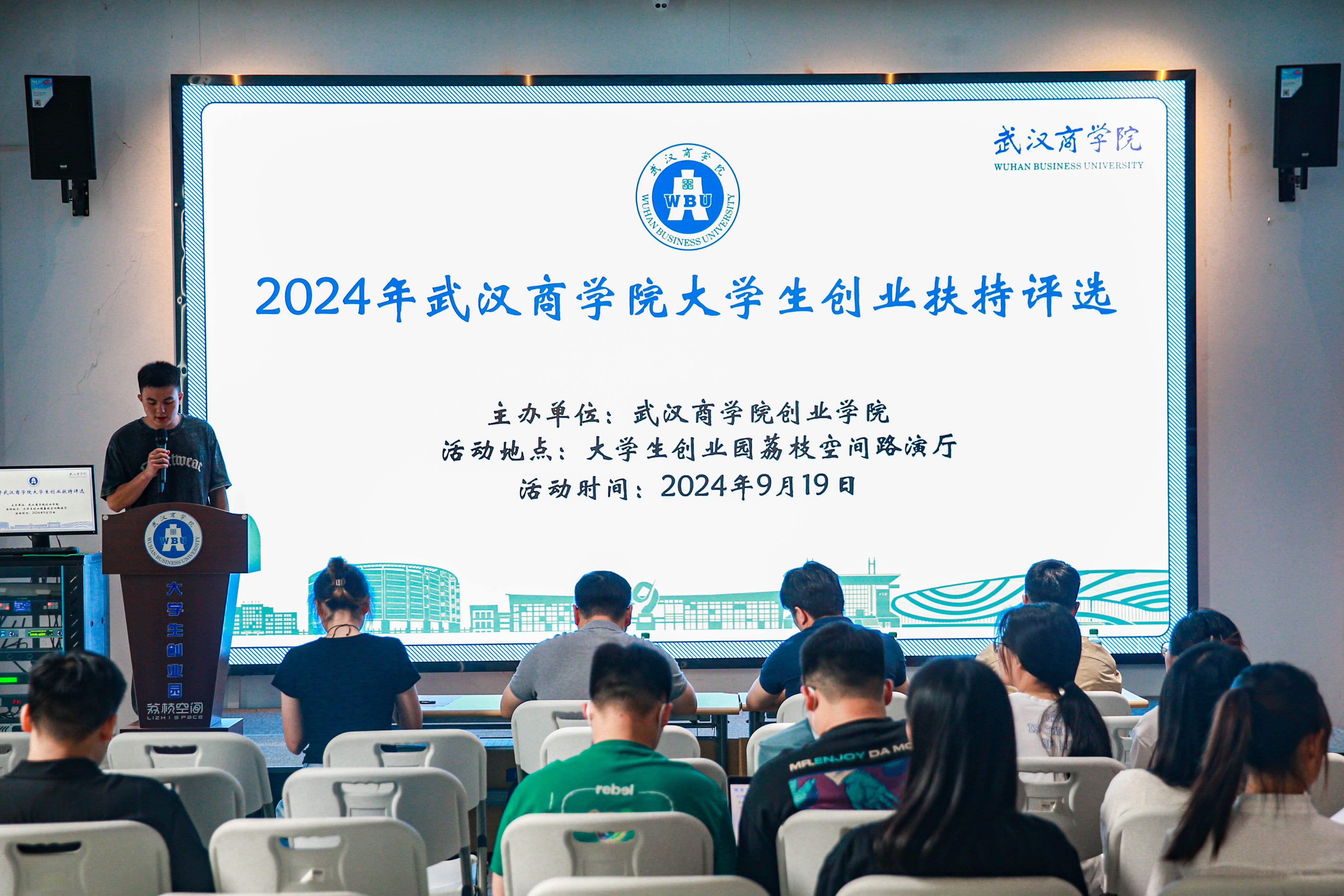 本网讯 9月19日,我校大学生创业园荔枝空间路演厅内气氛热烈,一场由创业学院主办的大学生创业扶持评选活动顺利进行。本次活动经过各学院的精心推荐,共有42支优秀团队成功入围现场答辩环节。