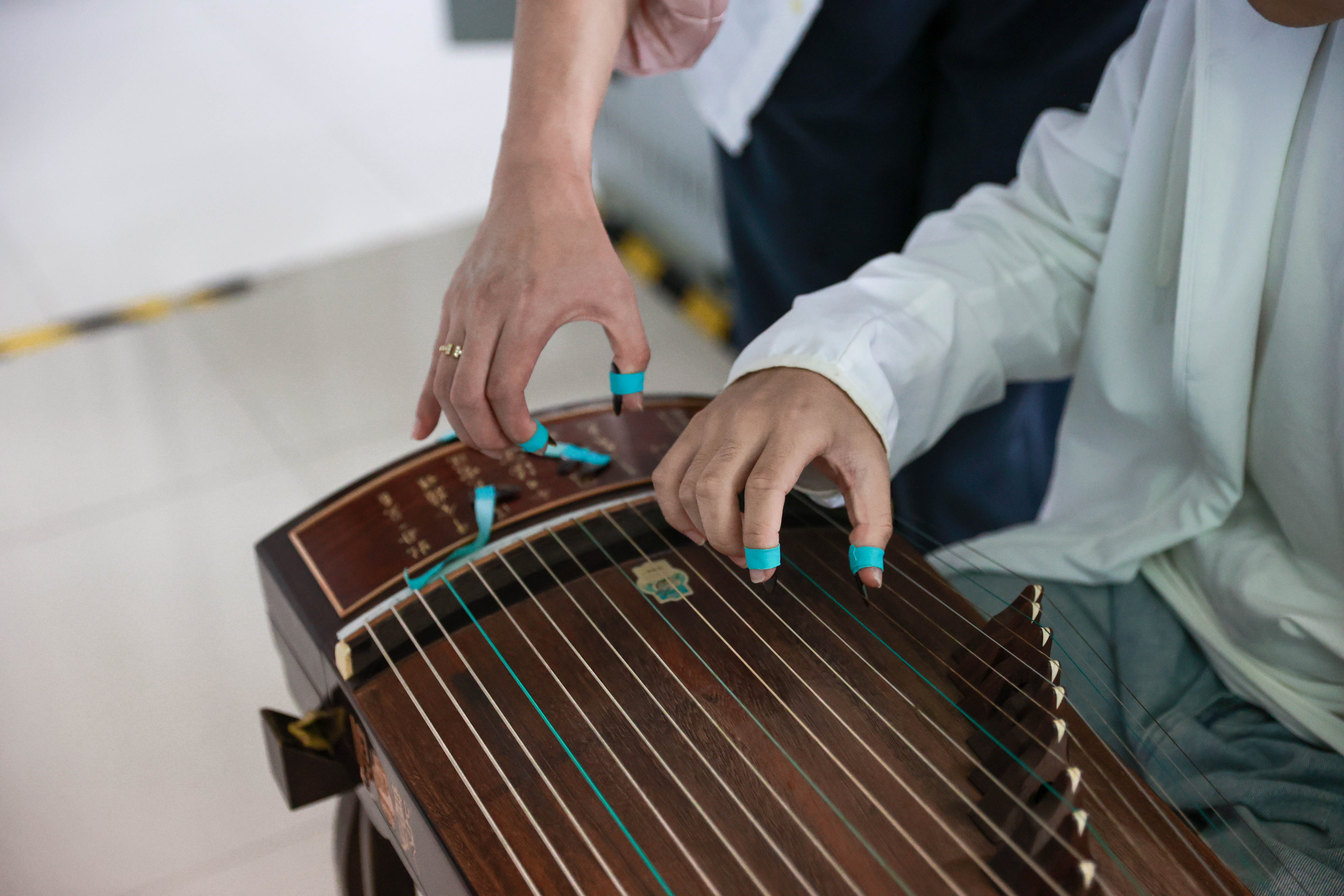 邓祎琪介绍古筝。黄妮可摄