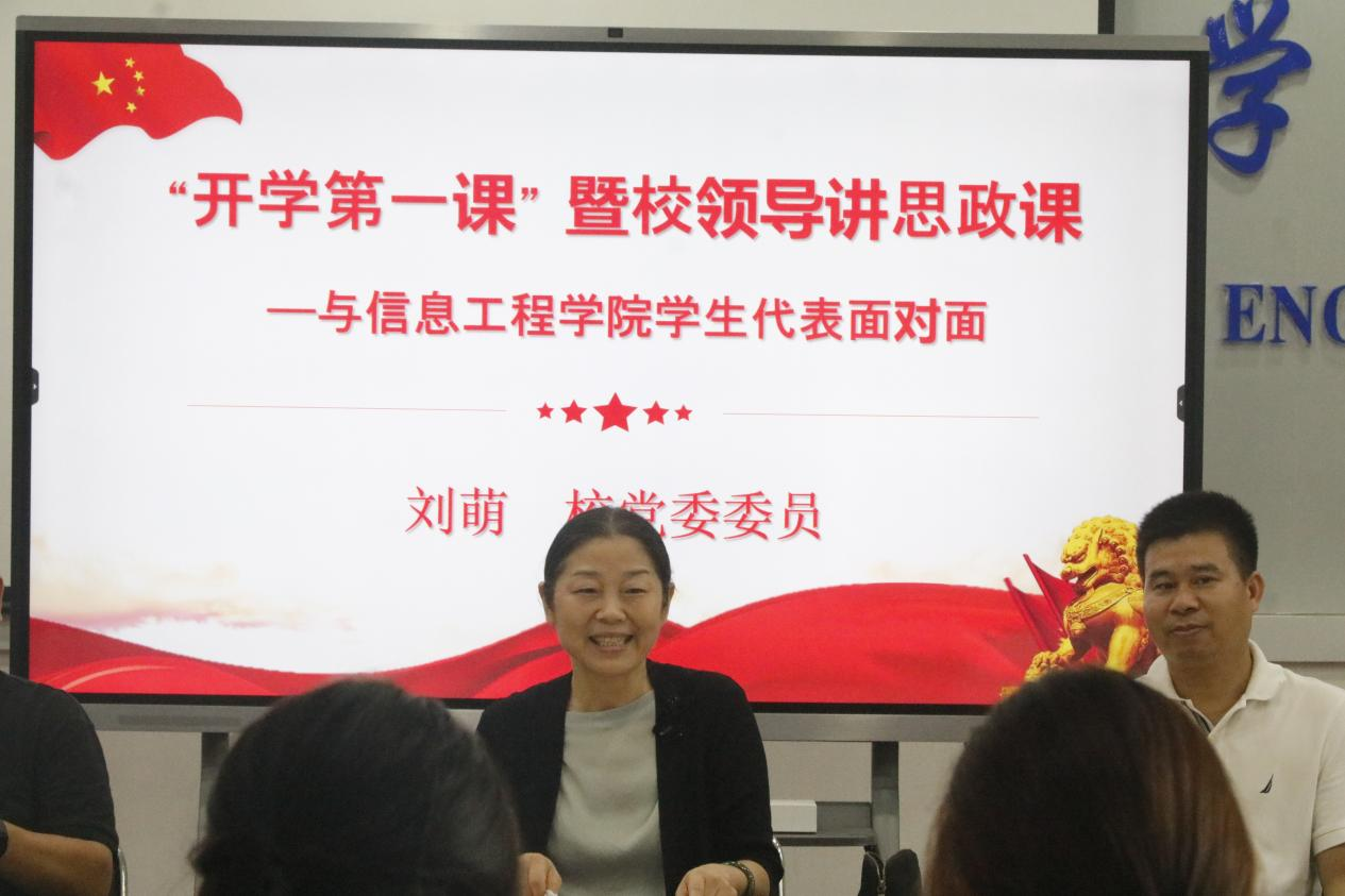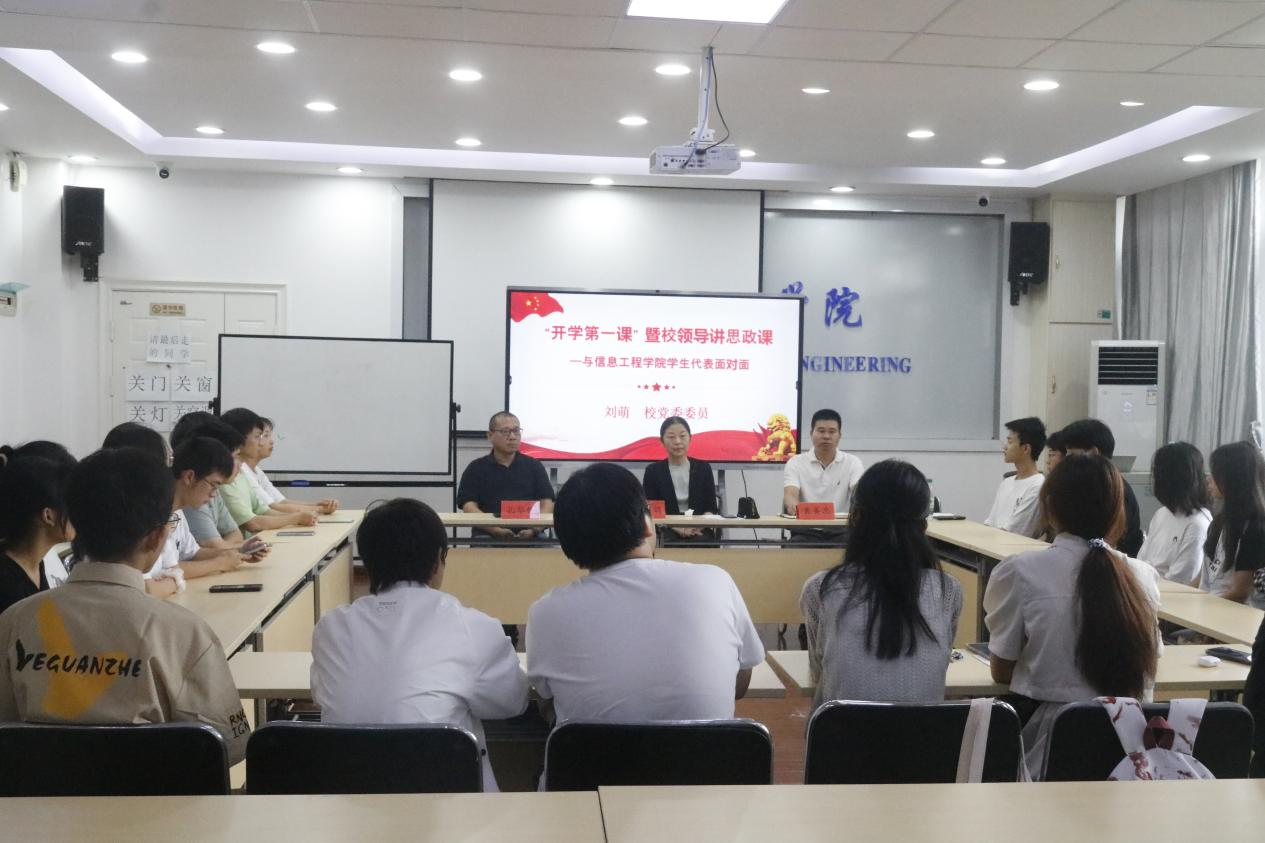 本网讯 近日,在信息工程学院南二教学楼401会议室,校领导刘萌以“二十届三中全会学习体会”为题给信息工程学院2024级新生代表带来了一场贴近专业、启迪思想的思政课。信息工程学院党委书记黄美忠、副院长孔华锋参加此次活动。