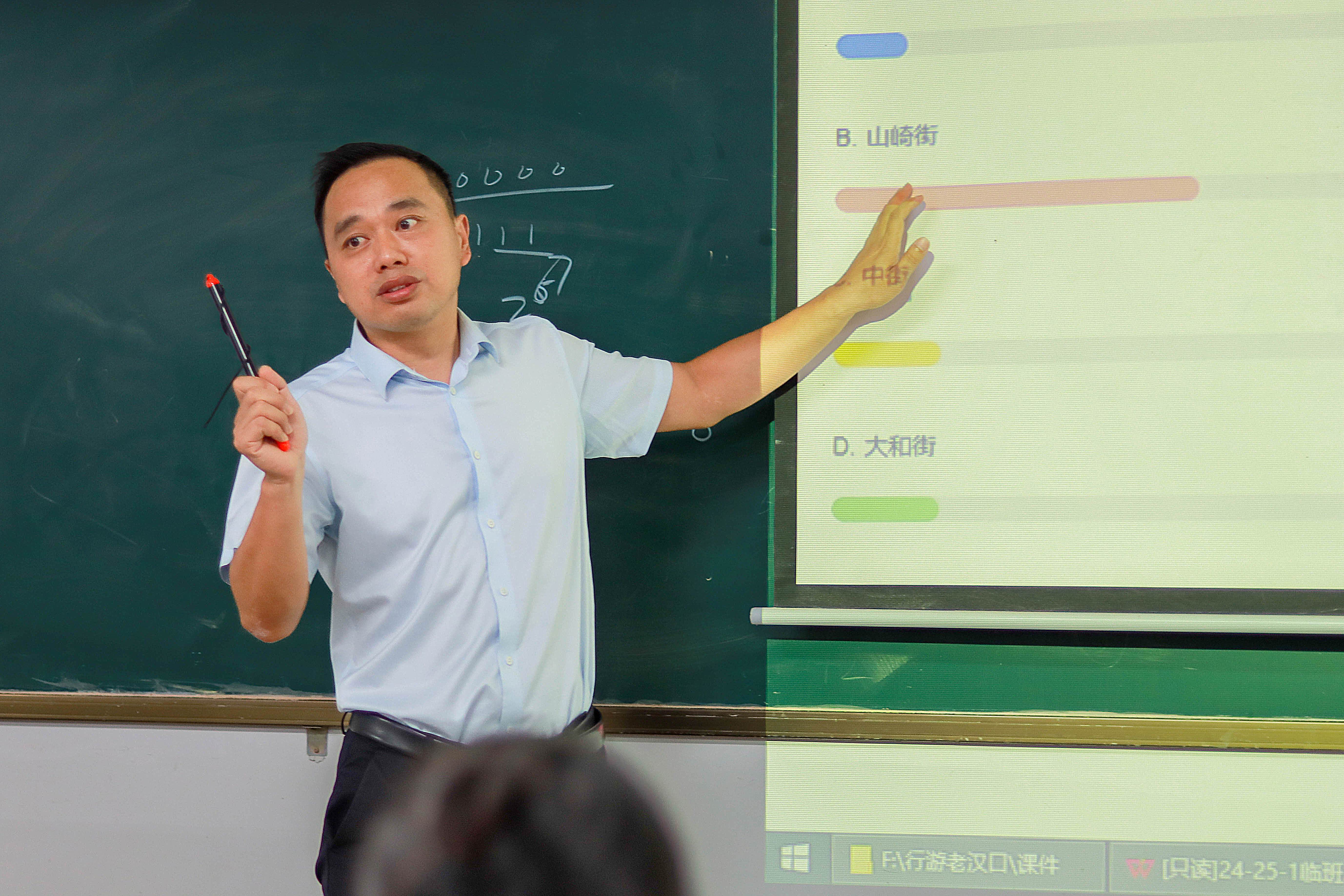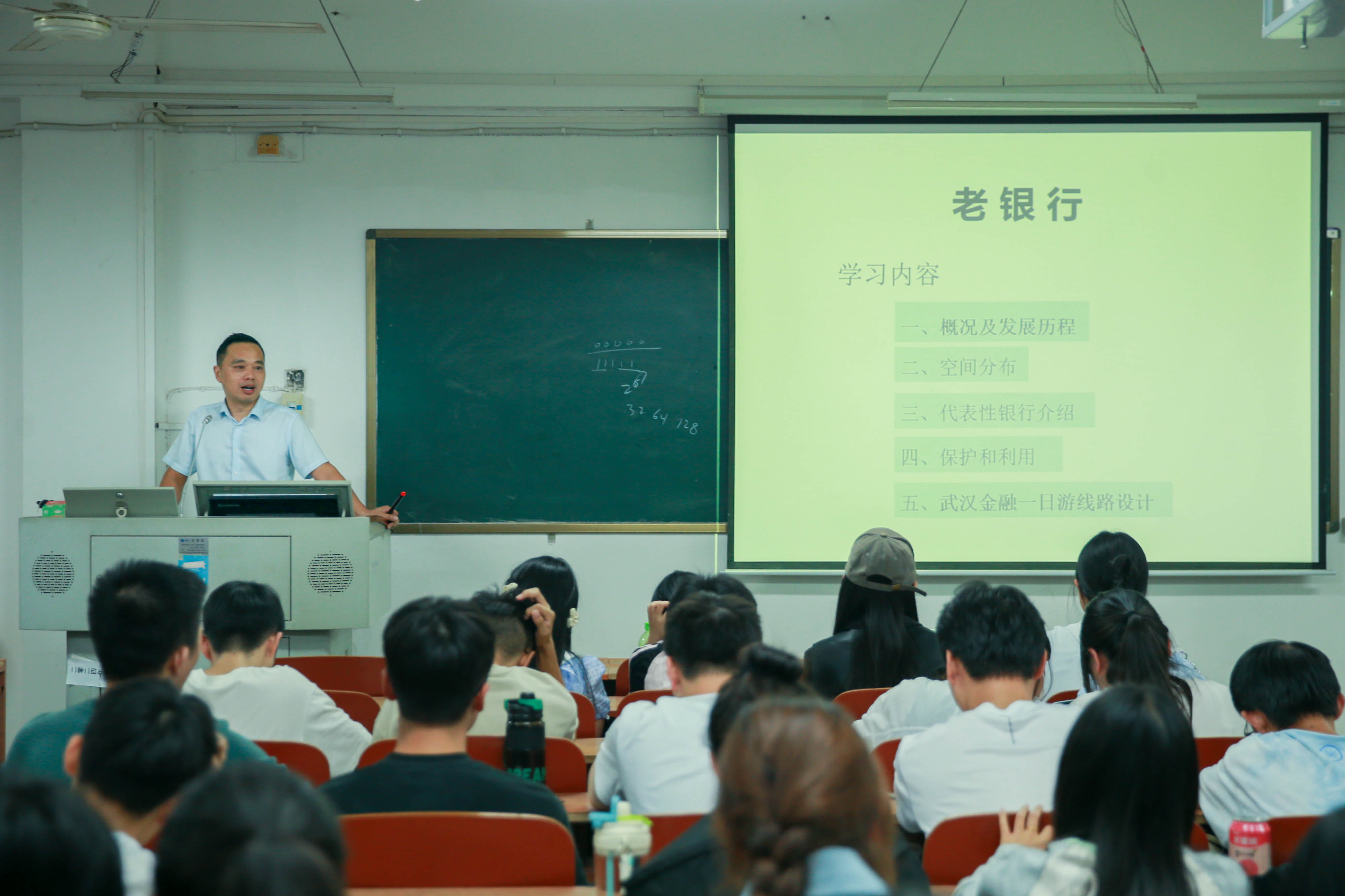 本网讯 汉口,作为武汉经济最繁华的区域之一,凭借欧式遗留建筑、汉口江滩与金融企业聚集地等而闻名遐迩。10月12日,在南一教学楼505教室,旅游管理学院教师徐松华开设公选课《行游老汉口》,通过生动的讲解和丰富的图片资料,带领学生们穿越时空,共同探寻“老汉口”的历史变迁。