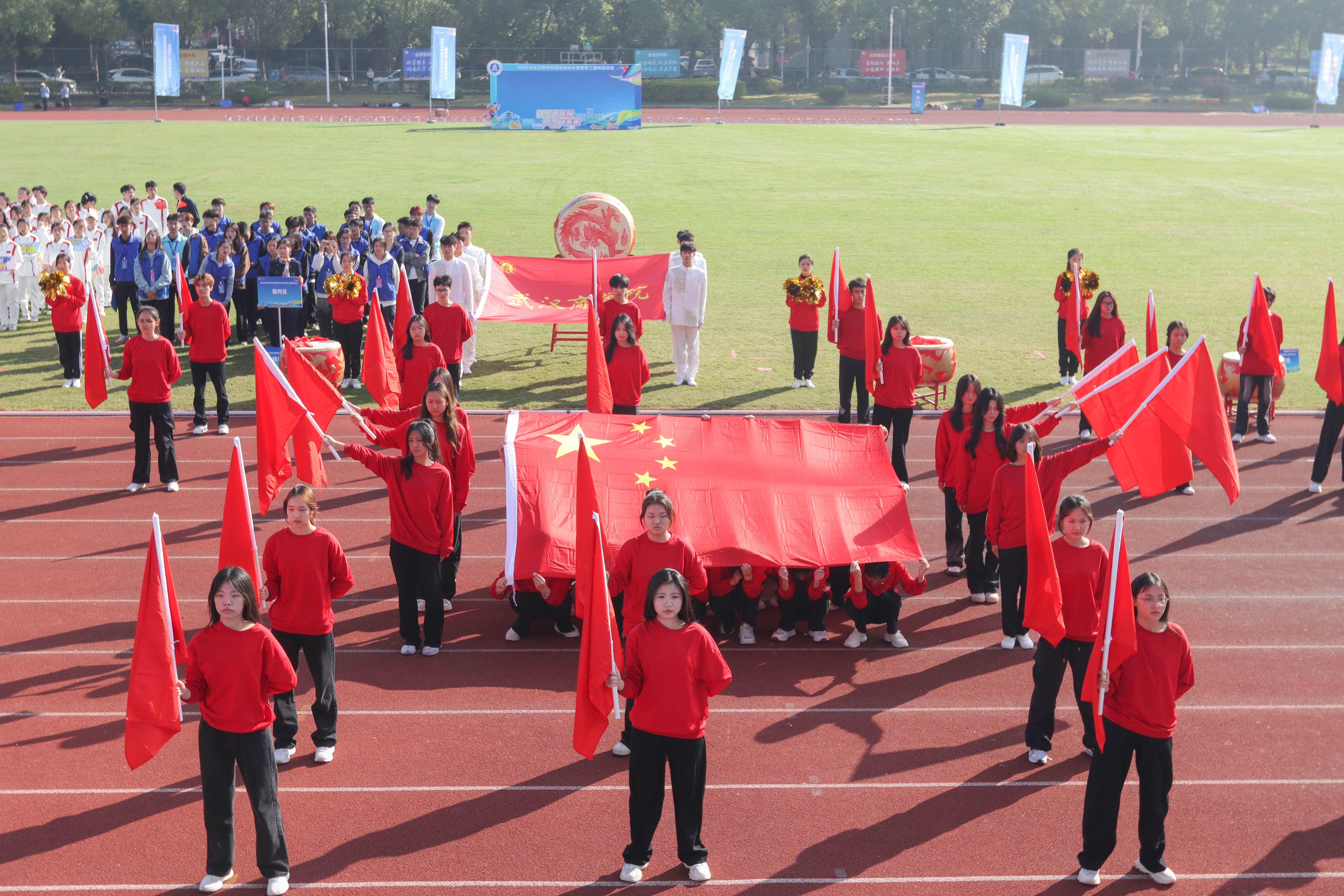 这场运动会上,亮点不止是步伐轻盈有力的马儿,舞狮表演同样激动人心;啦啦队让同学们过足了眼瘾;团体操表演热情洋溢、创意十足……这些表演不仅展现了同学们的才艺与创造力,更彰显了各学院独特的文化与风采。据了解,本次运动会共有12个方阵,900余名运动员,十余种竞赛项目。