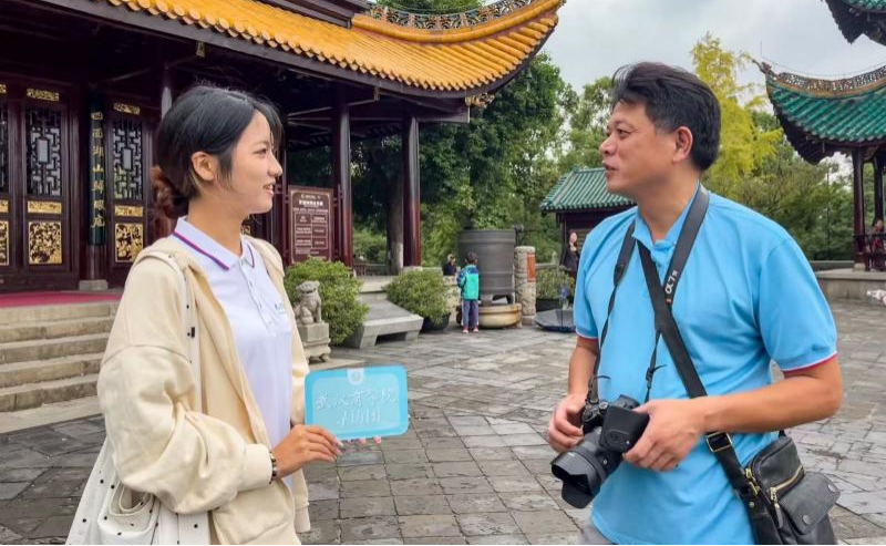 实践队在岳阳楼进行访谈。 谢欣怡摄