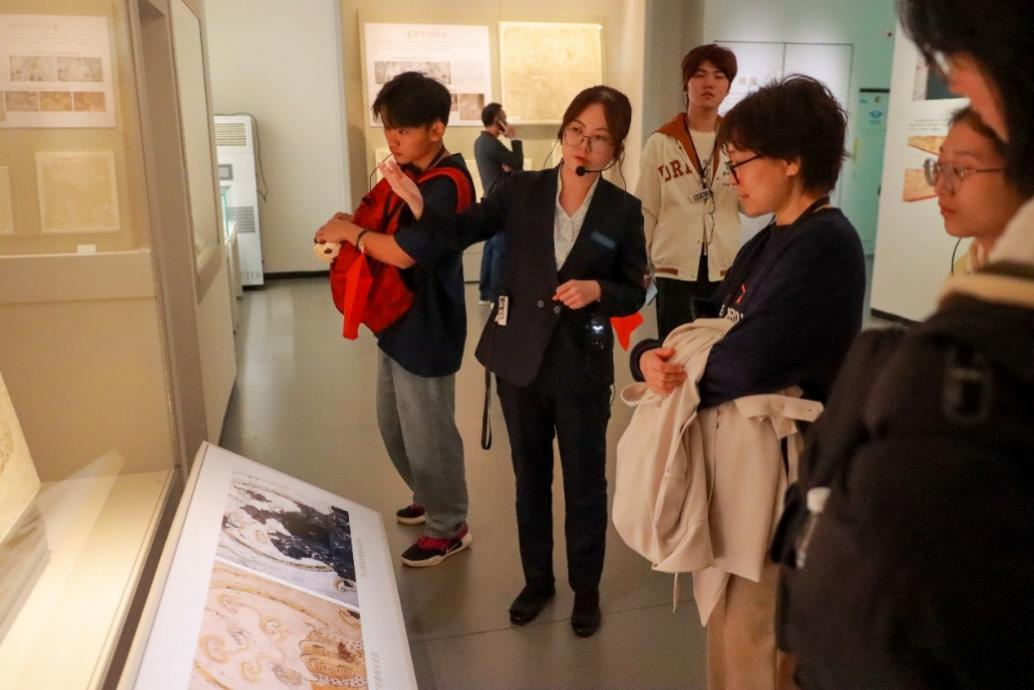 “大唐遗宝——何家村窖藏出土文物展”部分,从典章制度、饮食文化、妆容服饰、休闲娱乐、交流互鉴及工艺技术六个方面展示了盛唐文明,大纷纷赞叹文物的精美、制作工艺的复杂高超、匠人的巧思。“唐代壁画珍品展”部分,大家通过唐代高等级墓葬中的壁画,对唐代都城景象、流行服饰、歌舞娱乐及教育面貌有了一定的认知和了解。
