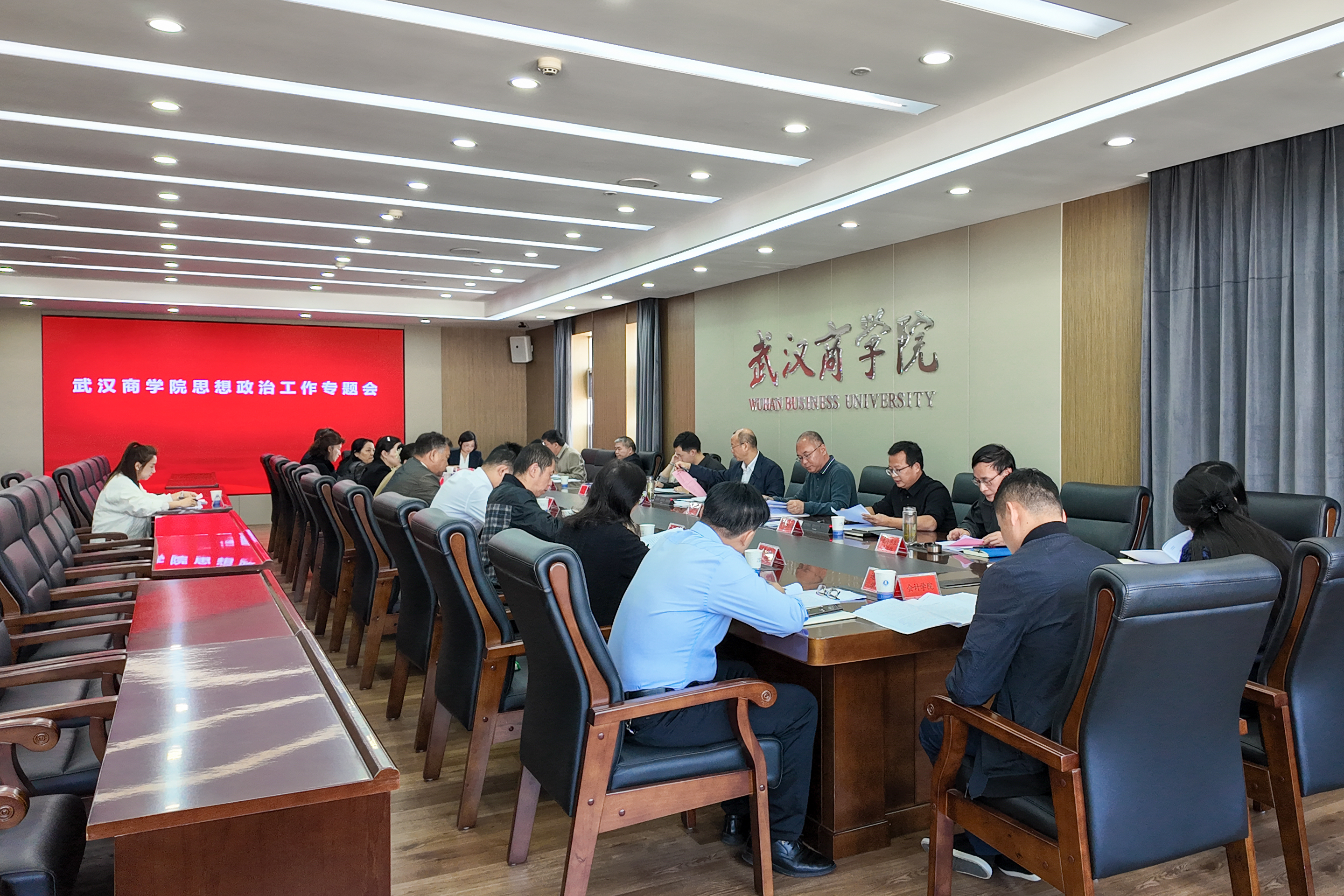 会议传达学习了2014年习近平总书记就高校党建工作作出重要指示、2020年习近平总书记在全国高校思想政治工作会议上的重要讲话。党委宣传部汇报学校思想政治工作情况汇报。党委学生工作部、党委教师工作部、教务处、马克思主义学院、校团委汇报分管领域的思想政治工作。体育学院·国际马术学院和工商管理学院汇报基层党委思想政治工作,教师代表王林、张夏青分享获得“双带头人”教师党支部书记“强国行”专项行动团队的经验。