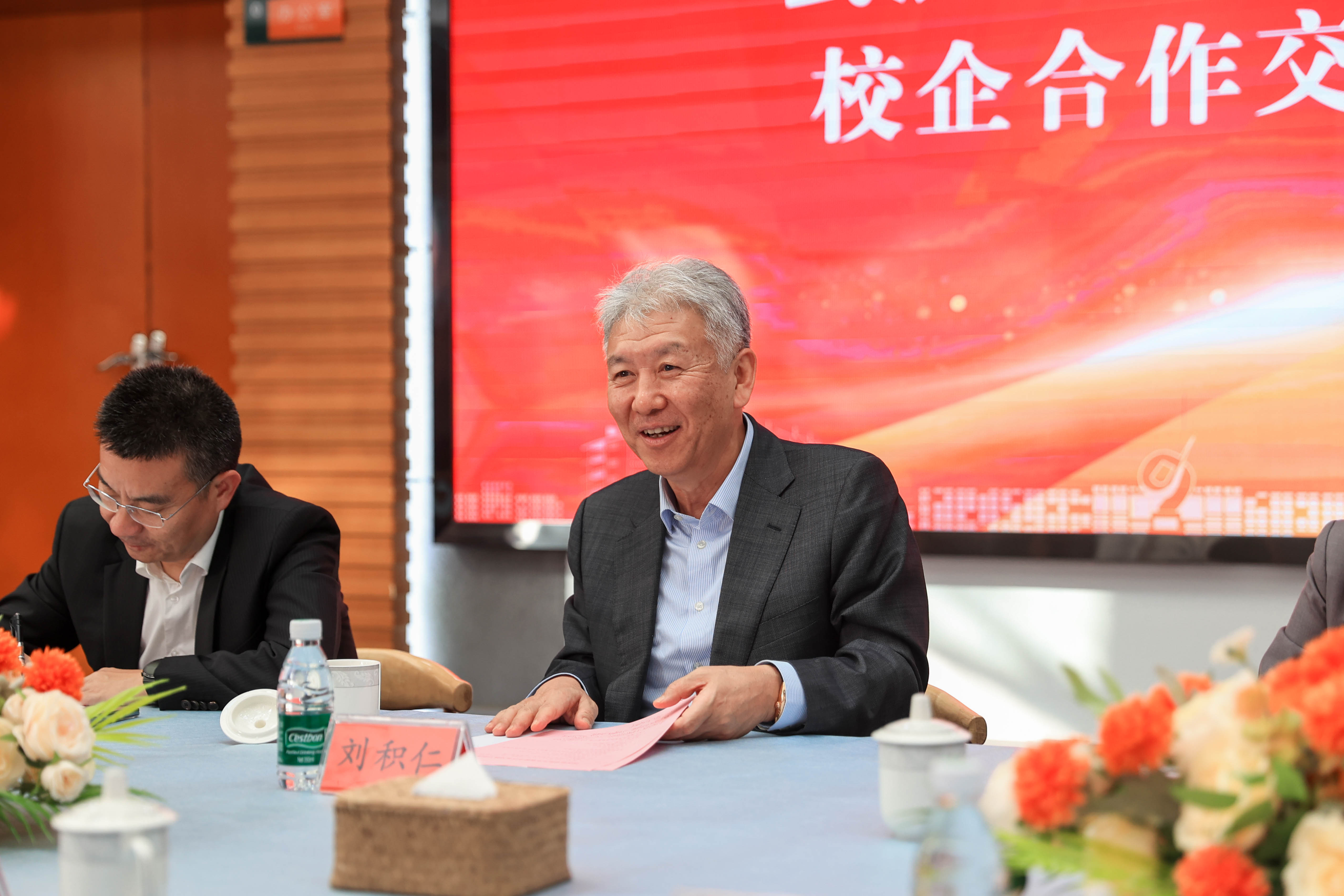 东软创始人、东软教育科技集团董事长刘积仁对学校的欢迎表示感谢,表达了与我校进行深度合作的愿望,期待与学校加强沟通协作,细化合作事项,精准对接,推动校企深度融合服务地方经济。