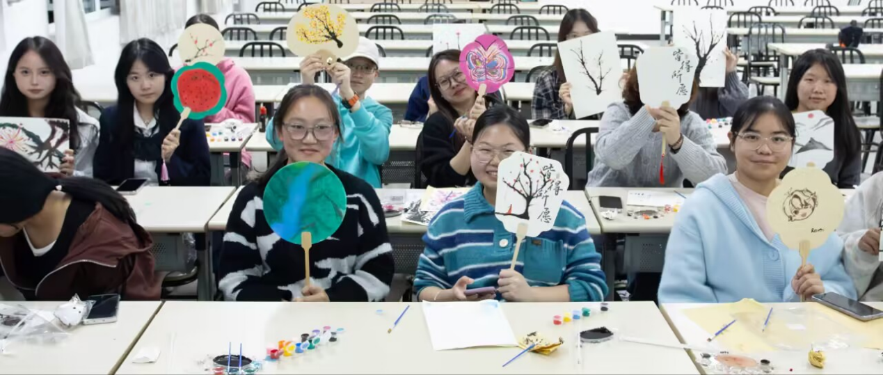 参与学生手持团扇合影。 学院摄