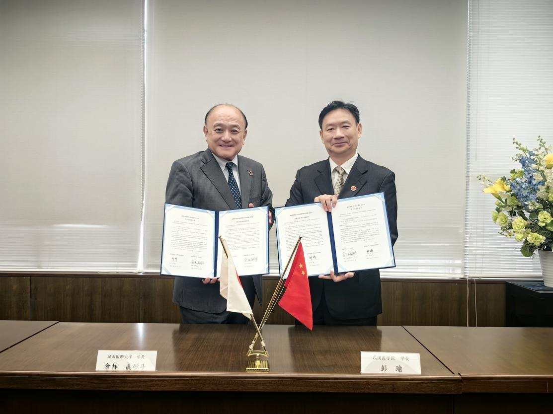 校长彭瑜与日本城西大学校长签署友好协议。 国际交流与合作处供