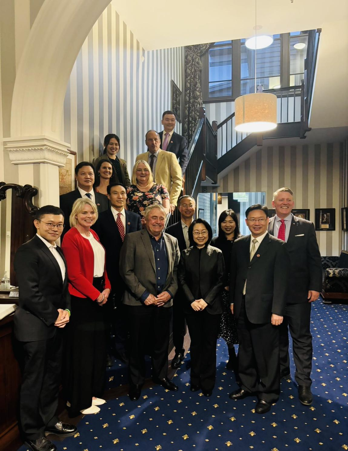 克赖斯特彻奇市长Phil Mauger(菲尔·梅杰)先生、市议员Victoria Henstock(维多利亚·汉斯托克)女士等热情接待了代表团一行,双方共同回顾了路易·艾黎先生对新中友好交流、教育、文化和社会服务等领域所做出的杰出贡献。Phil Mauger市长还回顾了今年8月访问我校期间的美好时刻和交流成果。交谈期间,双方就推动两国友城的教育和文化交流合作进行友好交流,达成积极共识。