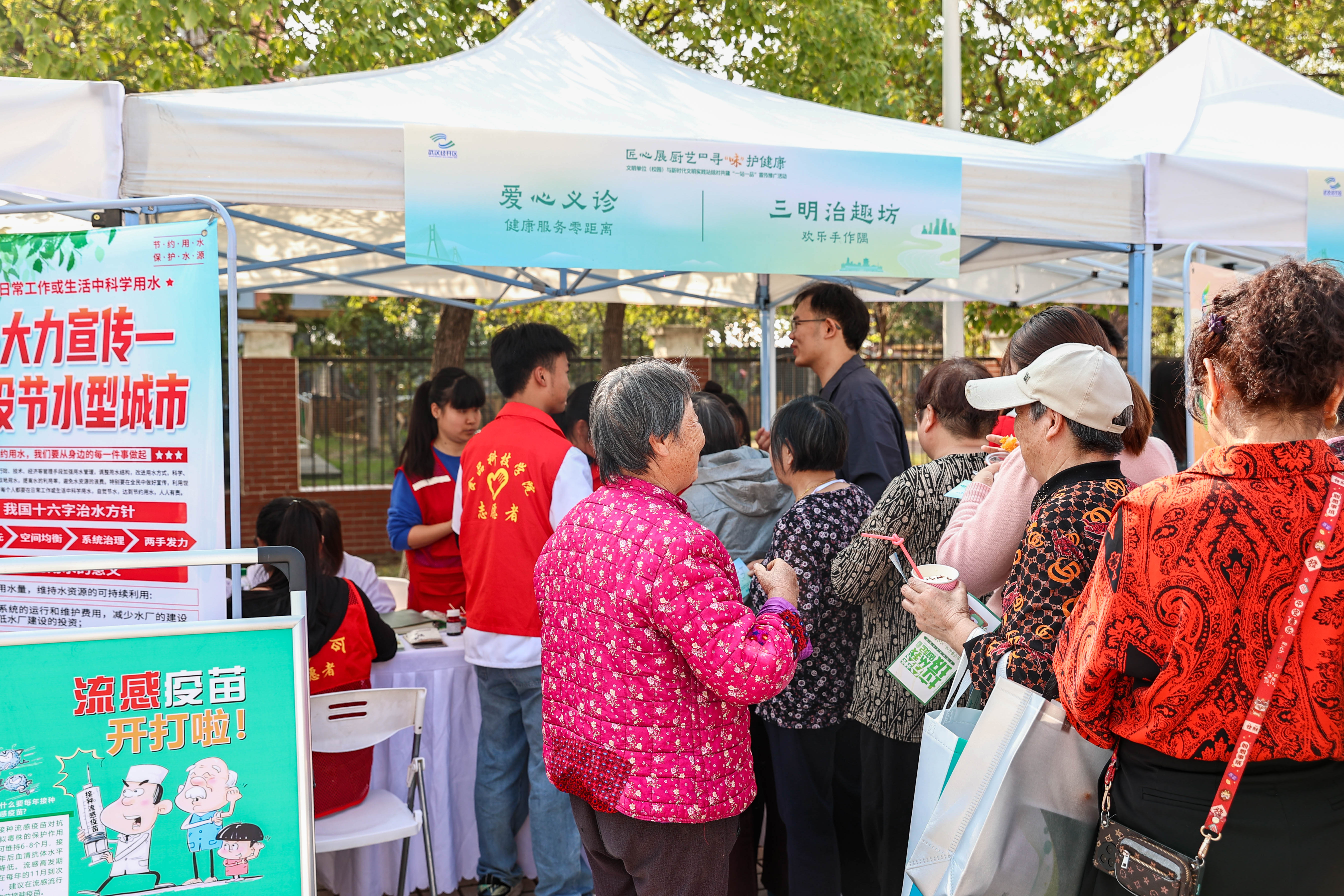 武汉市中医院也参与此次活动,并在现场设有养生护理与中医推拿摊位,为居民提供中医疗理体验。薛峰社区红色物业向居民宣传垃圾分类知识,为薛峰社区良好居住环境添砖加瓦。