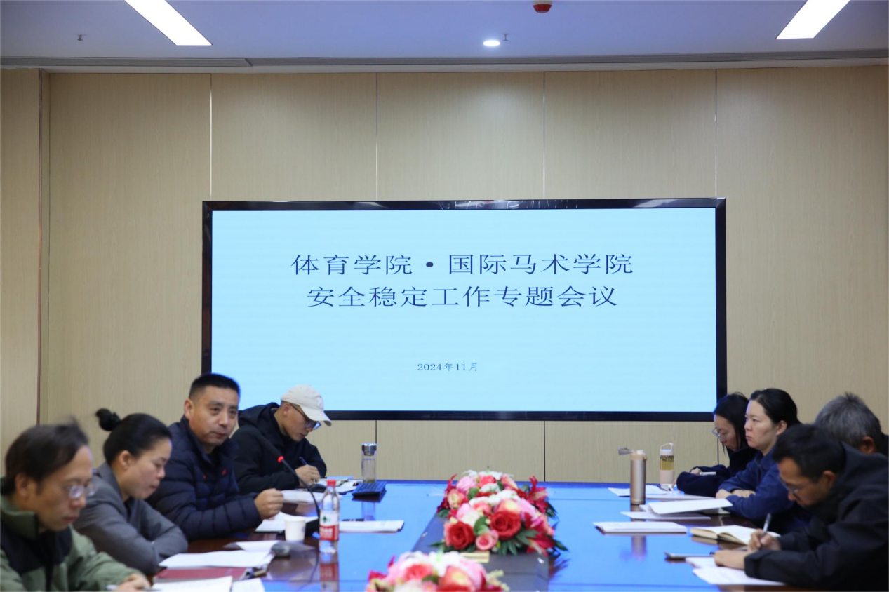 本网讯 11月20日上午,体育学院·国际马术学院召开安全稳定工作专题会议。学院领导班子、各系部主任、党支部书记及全体辅导员均参加了此次会议,会议由学院党委书记吴媛媛主持。