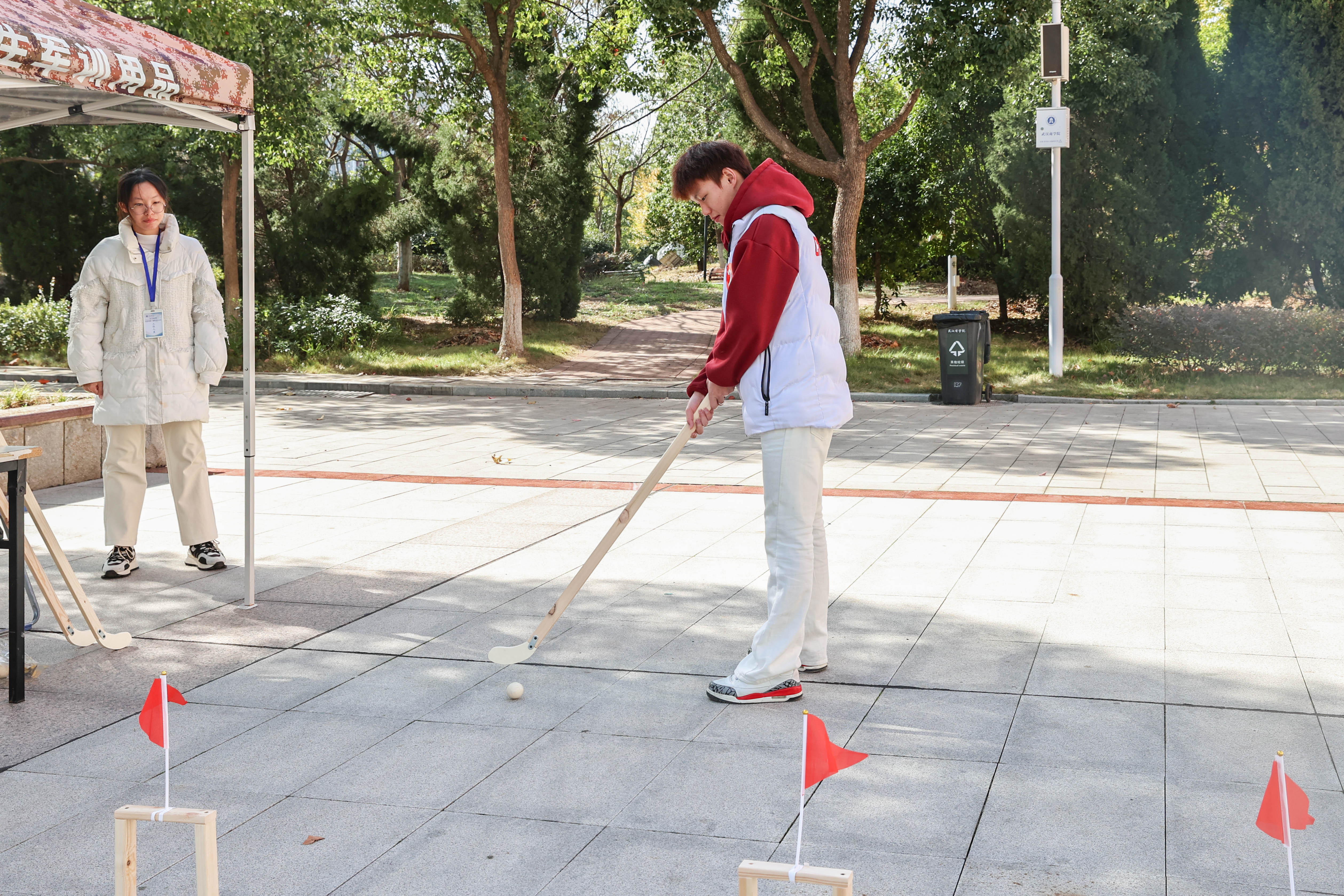 大学定向越野是一项结合了智力和体力的户外运动项目,要求参赛者用地图和指南针按预设路线寻找控制点,以最短时间完成者为胜。活动当天,阳光高照,赛场气氛火热。来自不同学院的120名同学齐聚体育馆门前,展开了一场速度与智慧并存、激烈与乐趣同在的团队竞逐比赛。投壶、蹴鞠、捶丸和两人三足……这场比赛设立了四个游戏关卡,每个关卡不仅有传统体育活动的团队默契考验,还有党史和新中国史等知识问答,旨在提高同学们的综合素质和团队协作能力。
