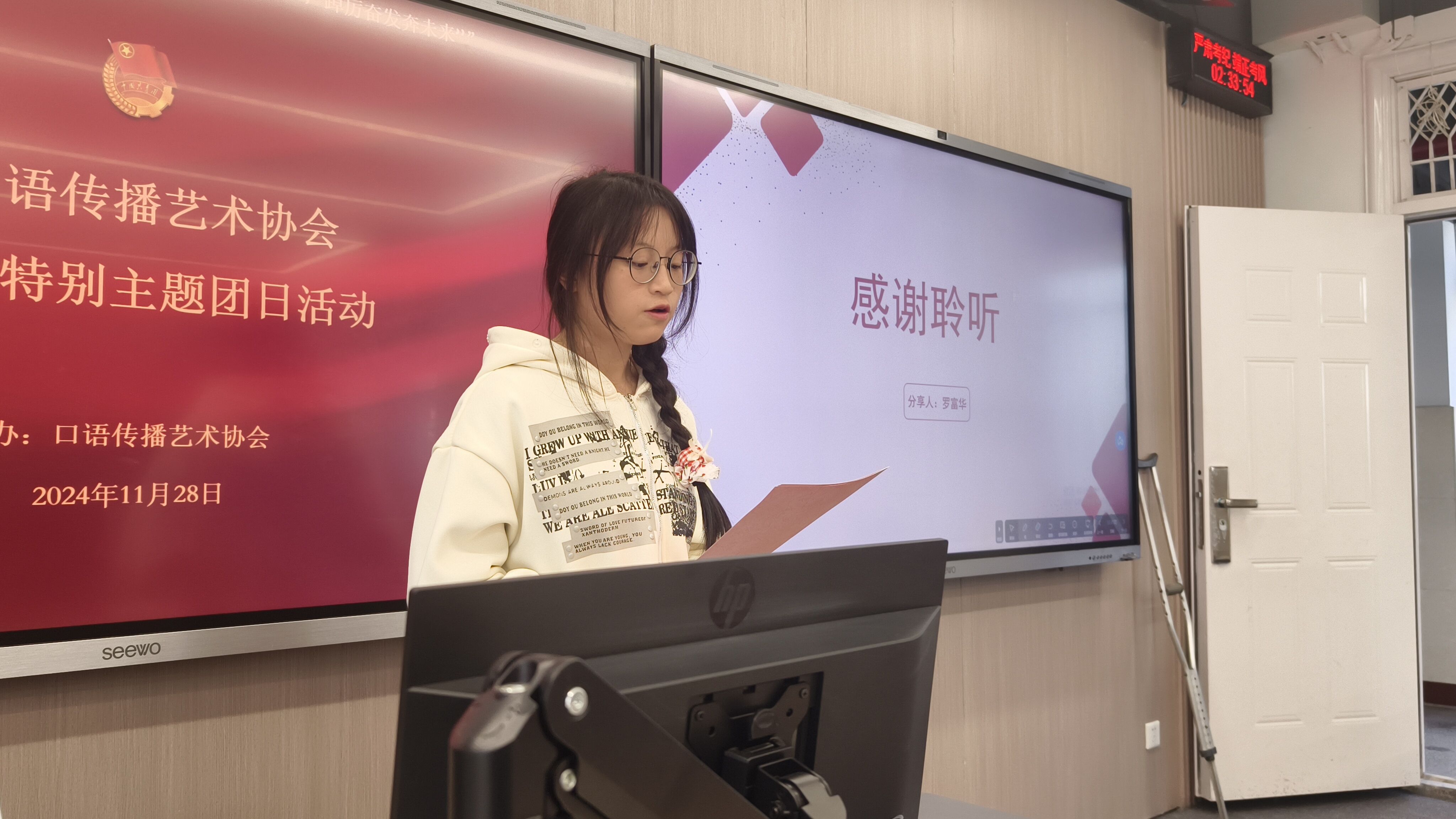本网讯 11月28日,口语传播艺术协会十一月特别主题团日活动暨第十九期“青春致远”读书分享会“经典领读”系列之“光阴荏苒辞旧岁,踔厉奋发奔未来”活动在南一207教室圆满举行。本次活动由口语传播艺术协会主办,通过阅读与交流,提升青年的文化素养和时代使命,吸引了全校40位同学参与本次读书分享会。