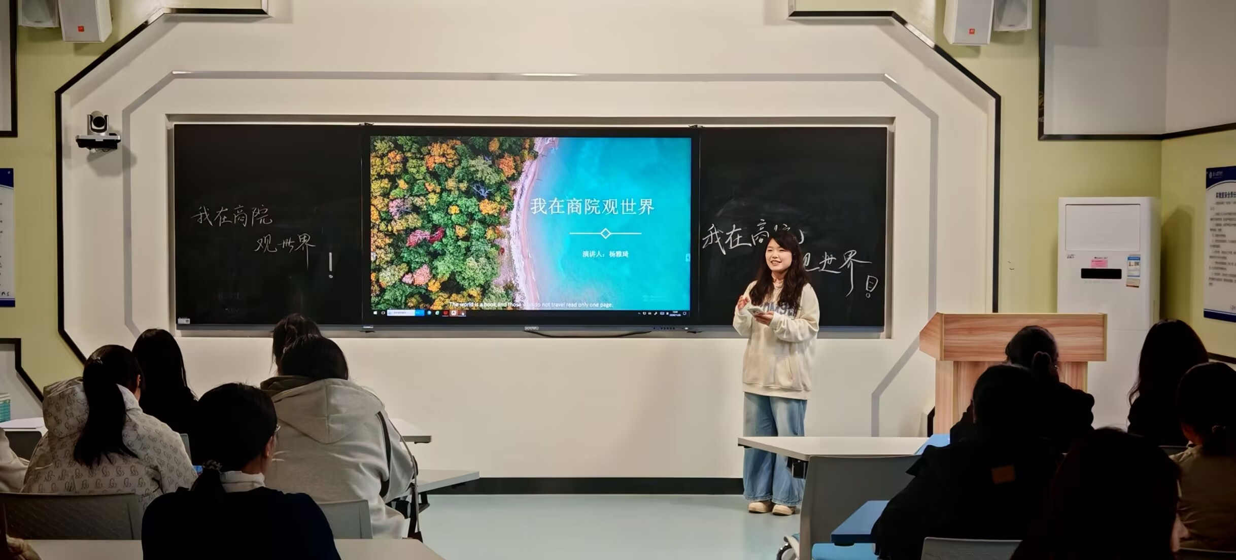 本网讯 11月26日,经济学院于北五308教室成功举办“我在商院观世界”活动。学院教师刘冰洁以“看遍世界,做回自己”为主题展开经验分享。2024级部分学生代表参与本次活动。